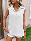 Sleeveless Button Textured Lapel Tank Tops