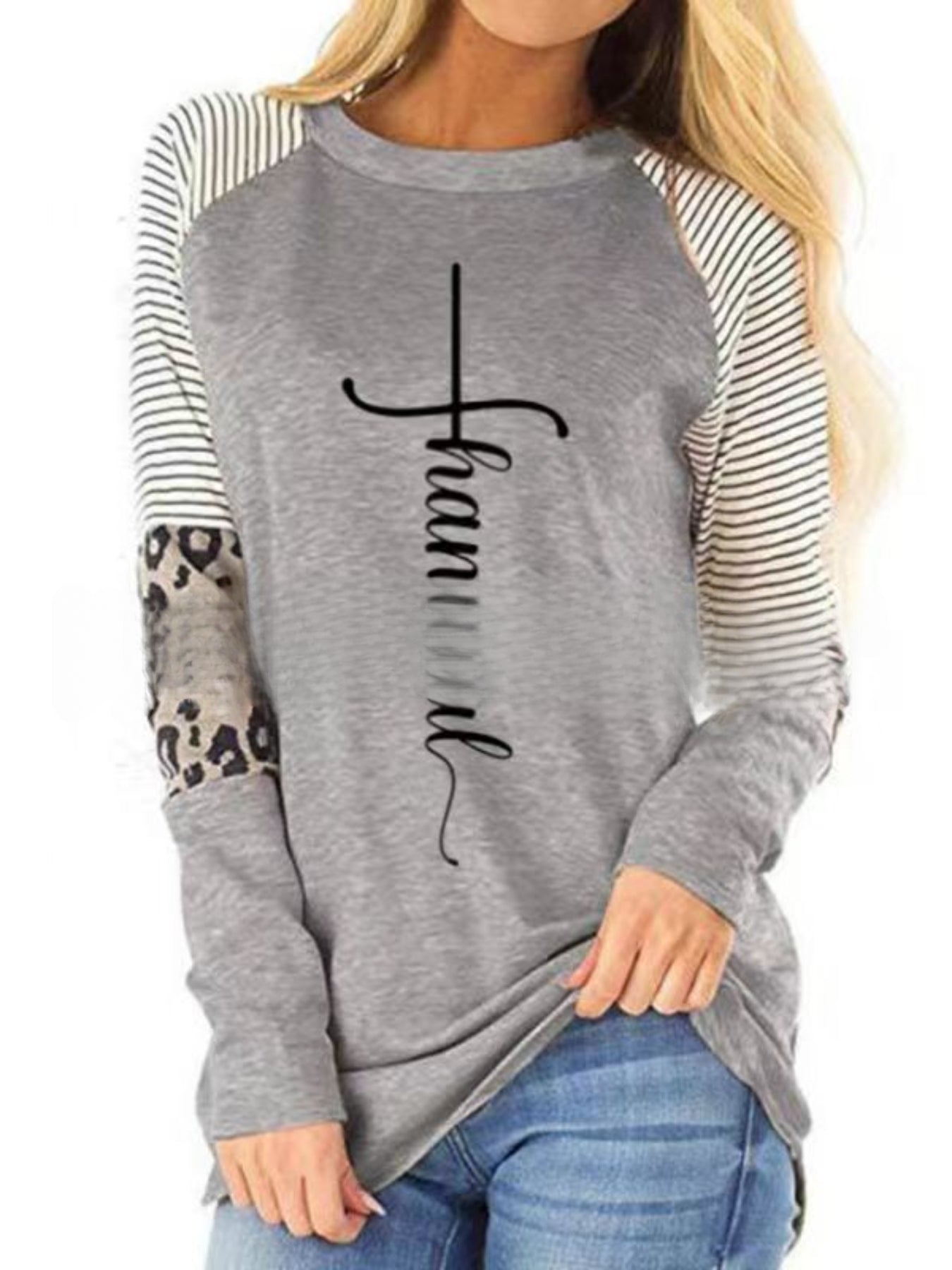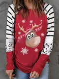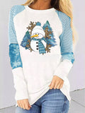 Sale Snowman Pattern Crew Neck T-Shirt, Casual Long Sleeve Top