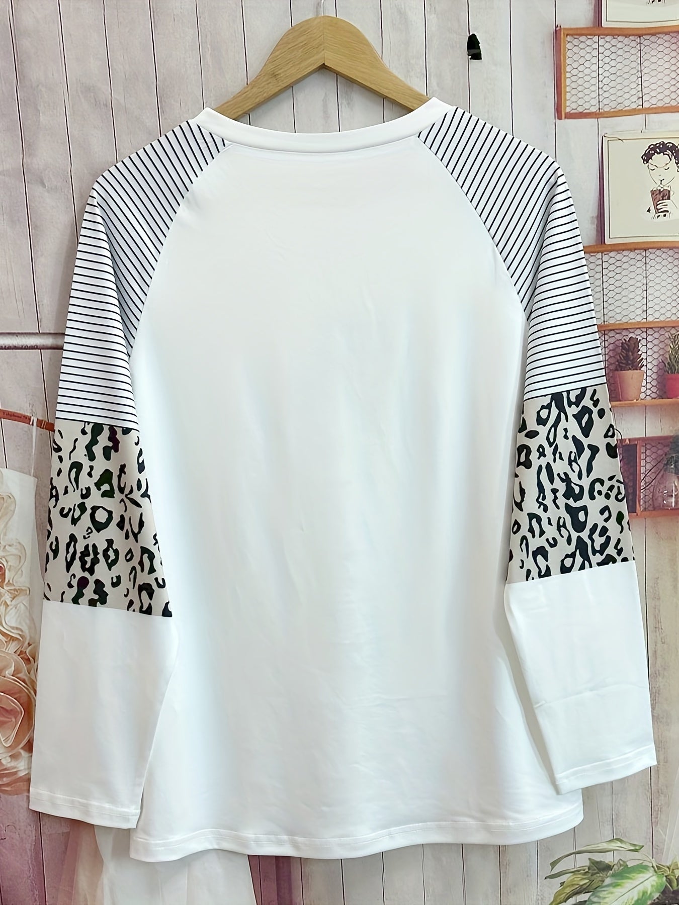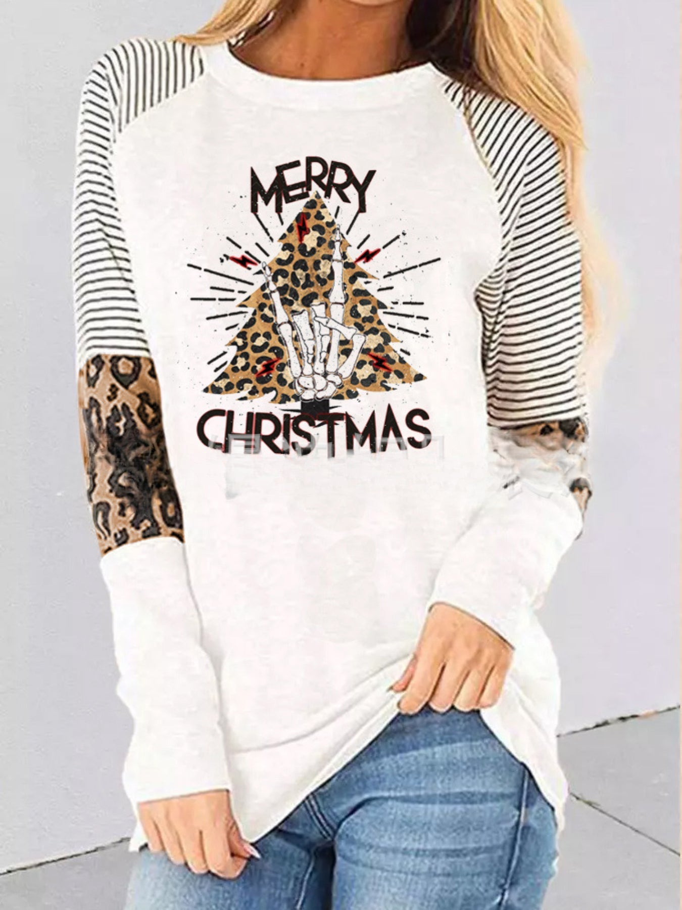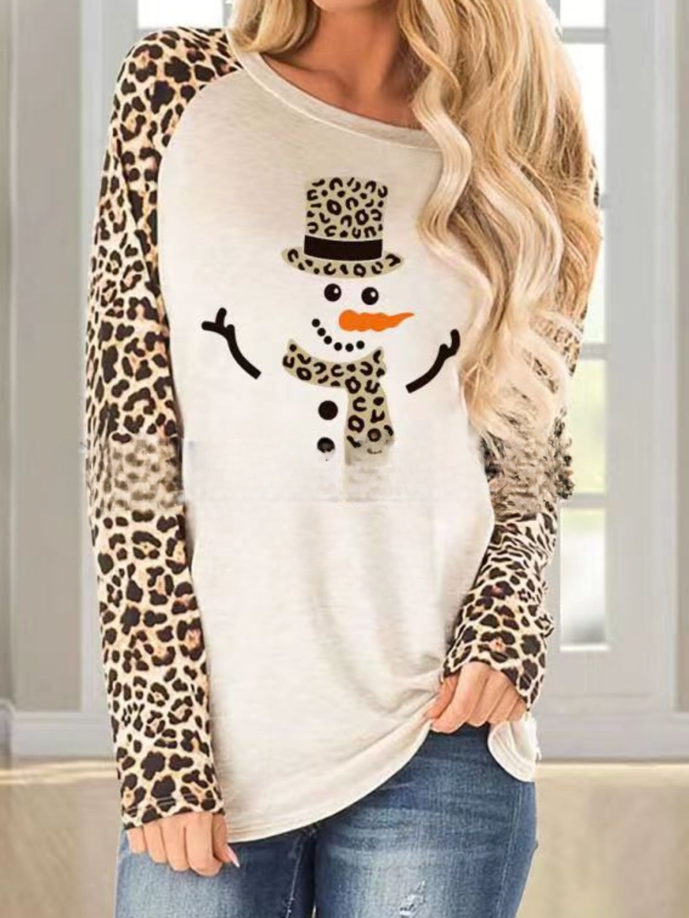 Snowman Pattern Crew Neck T-Shirt, Casual Long Sleeve Top