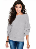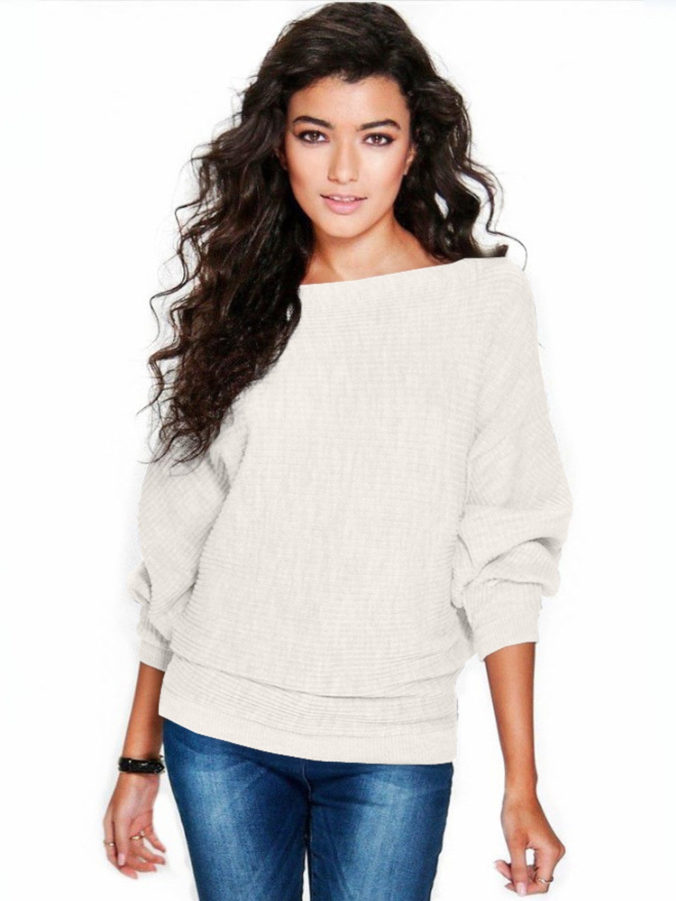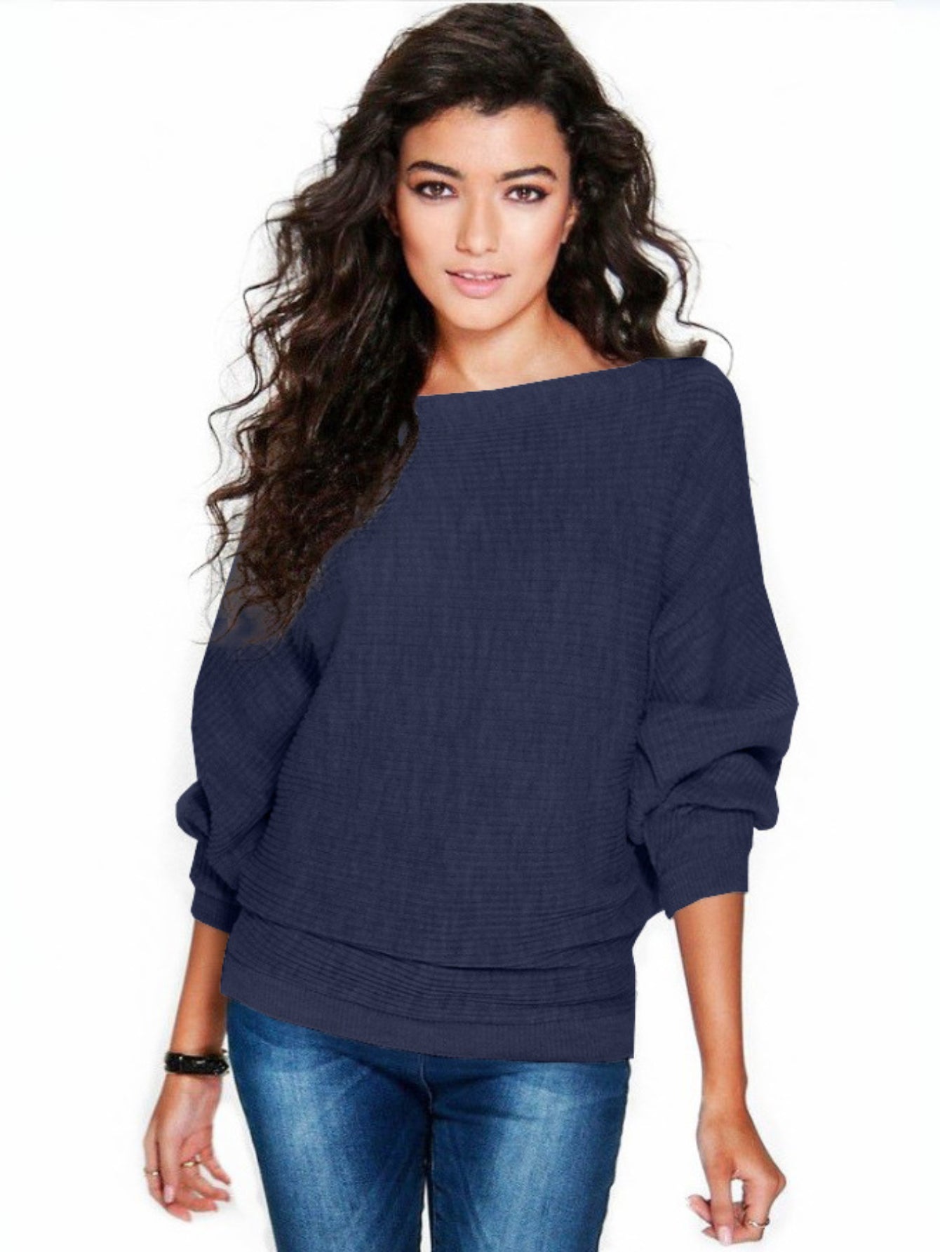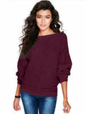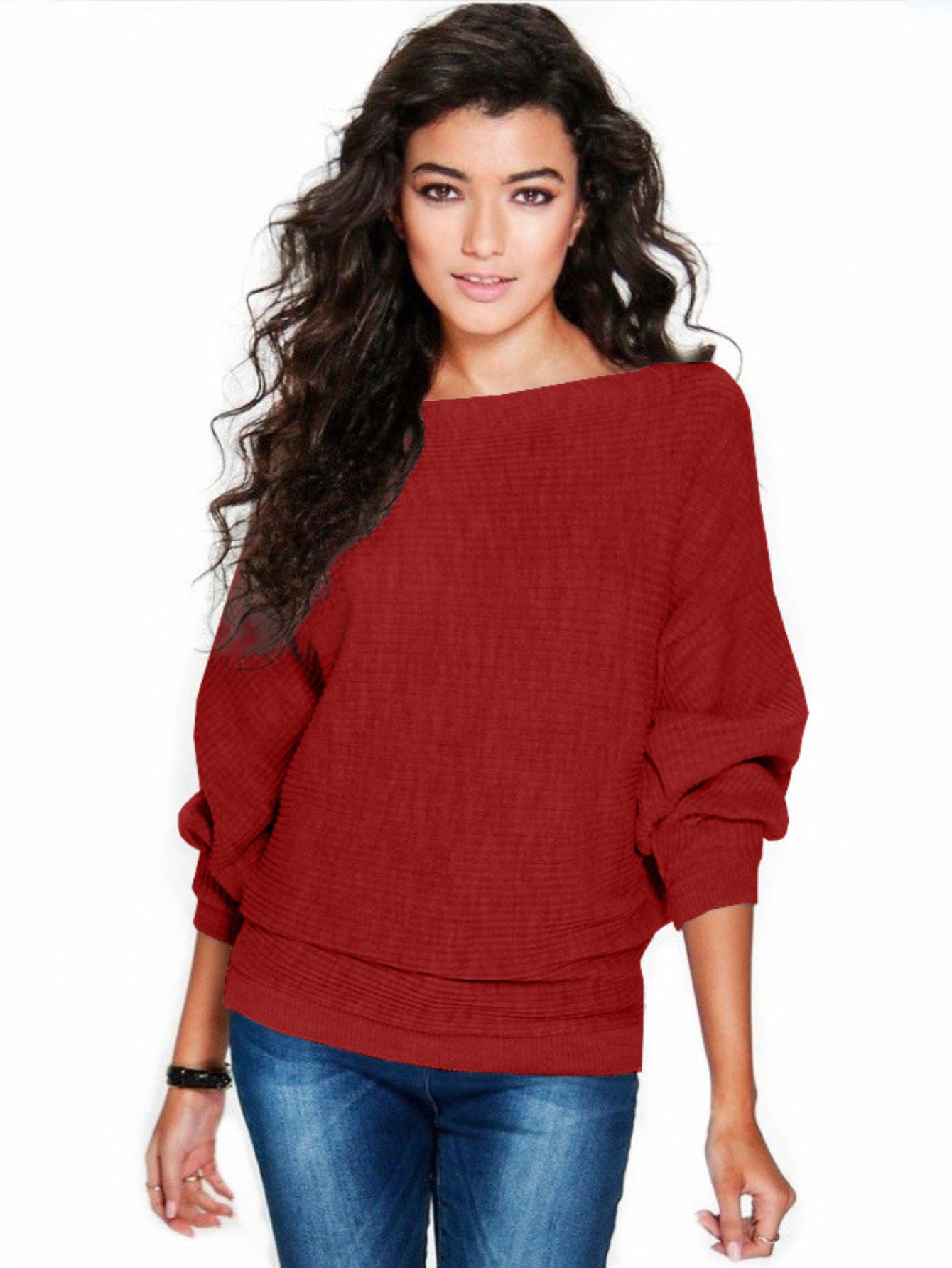 Sale Solid Boat Neck Pullover Sweater, Casual Batwing Sleeve Drop Shoulder Sweater
