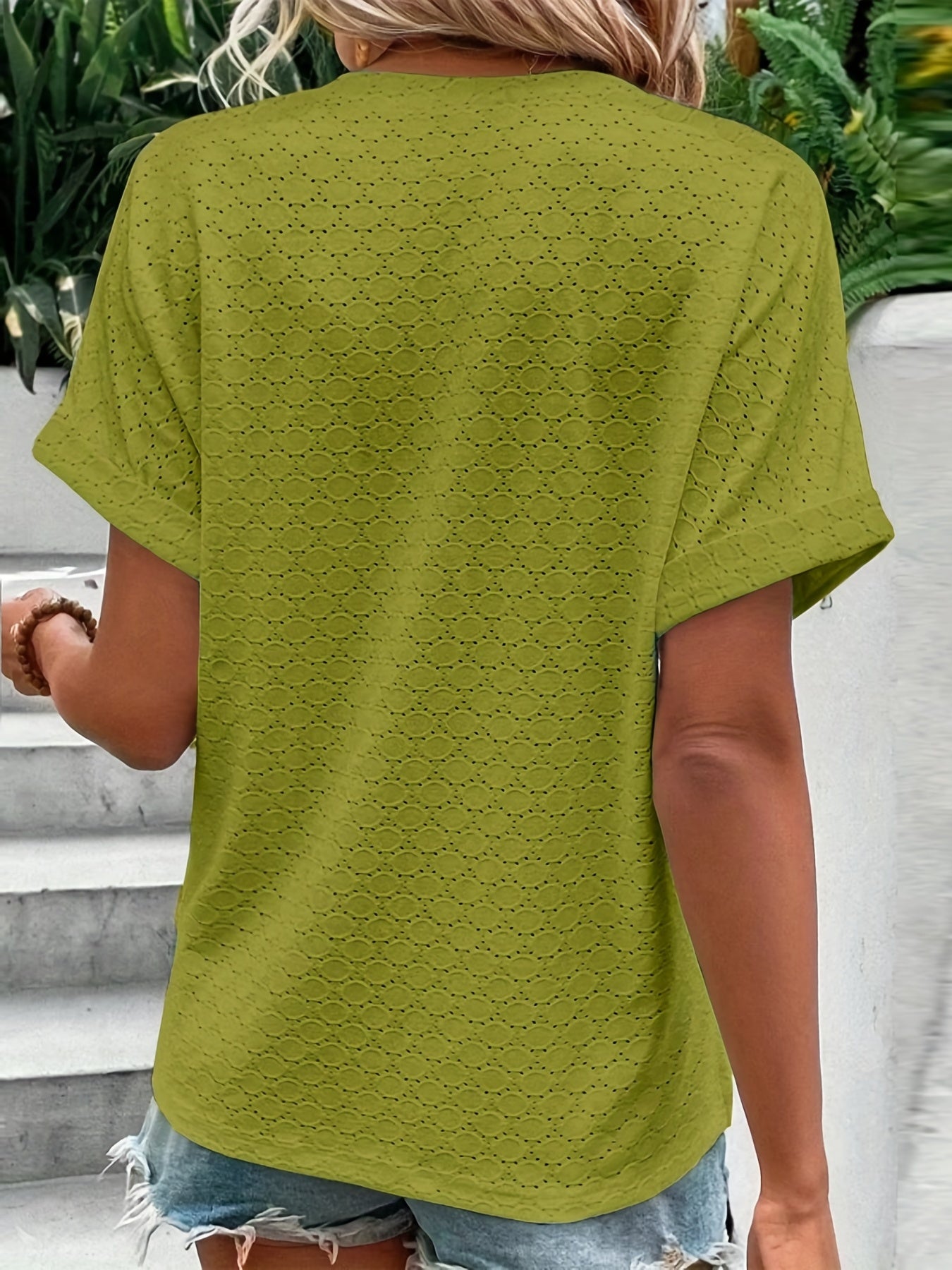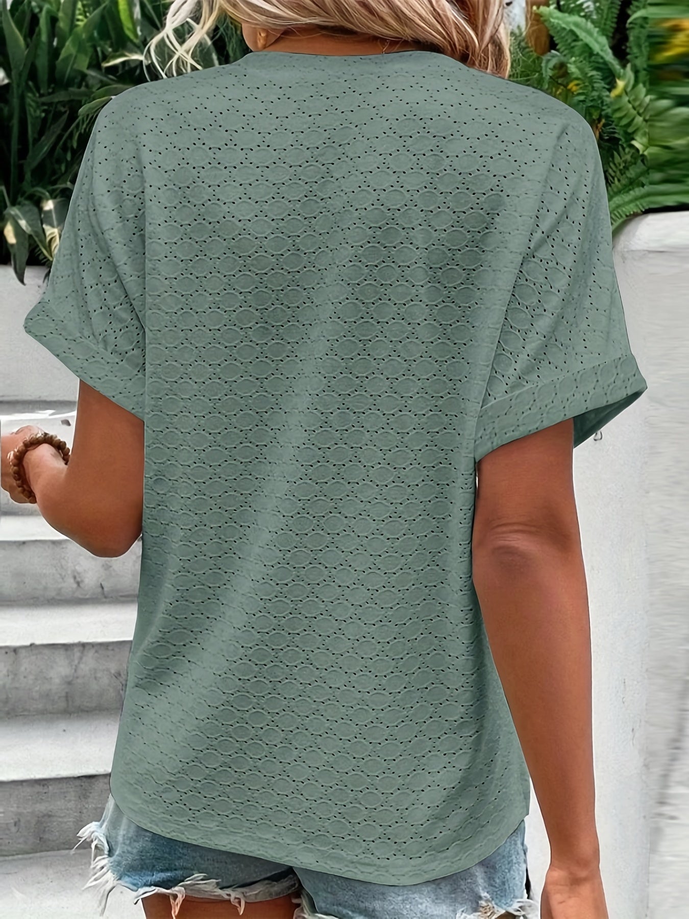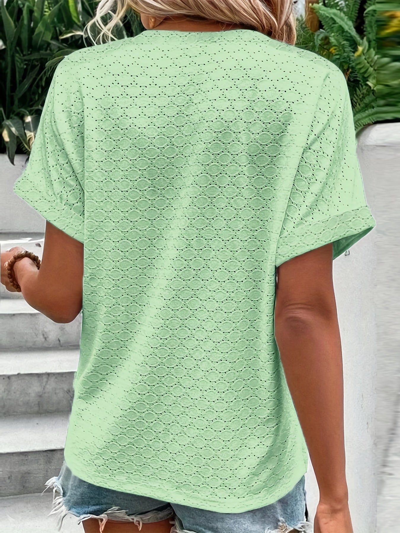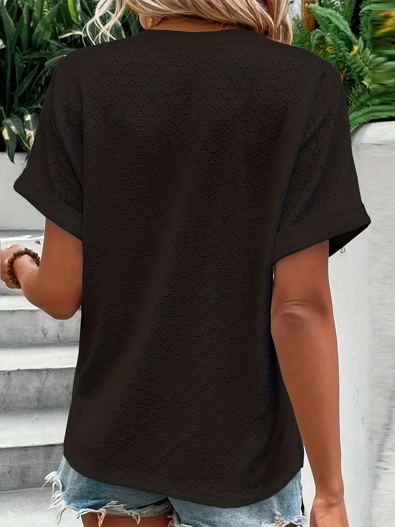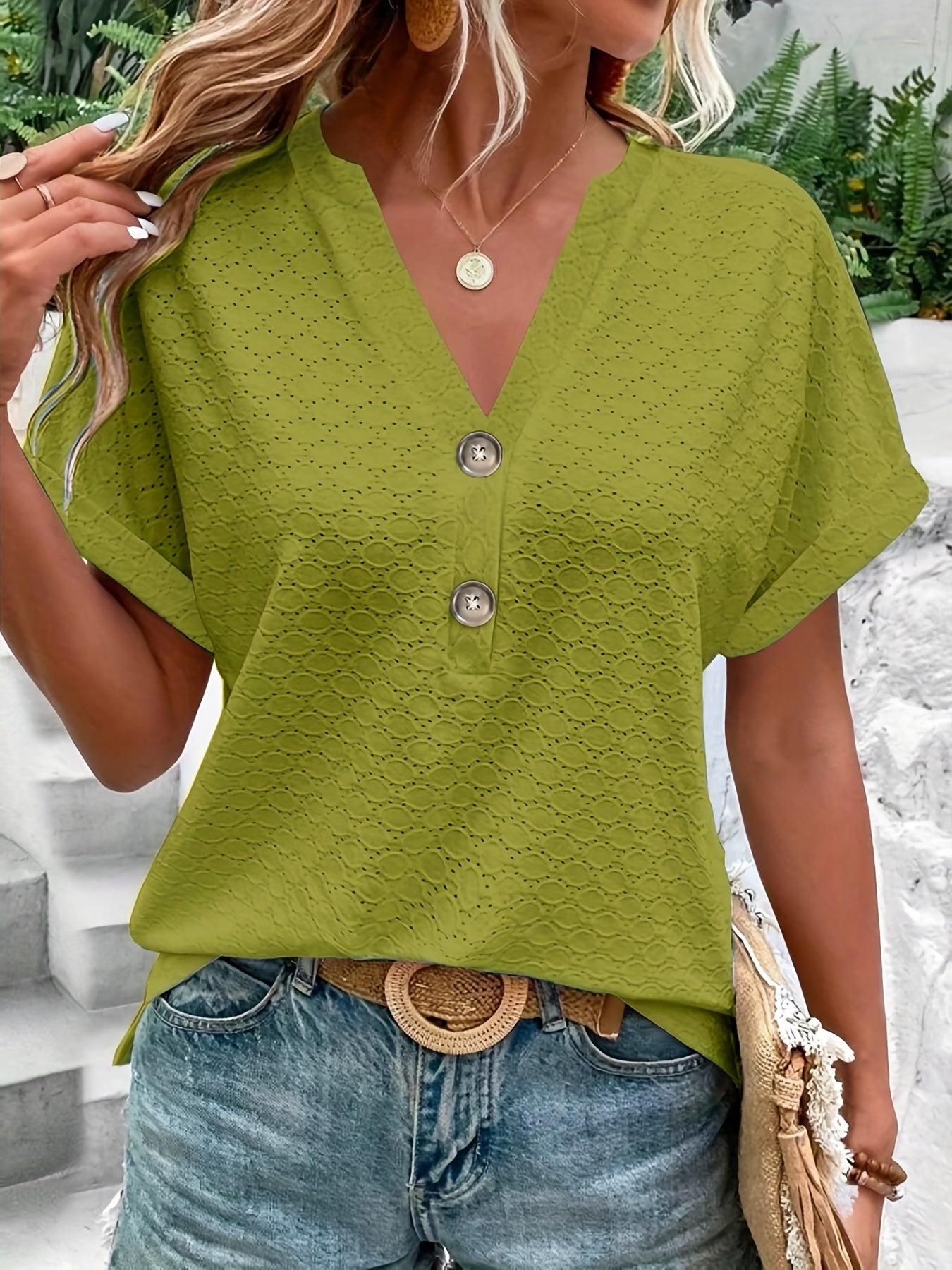 Solid Button Front V Neck T-Shirt, Casual Short Sleeve Top