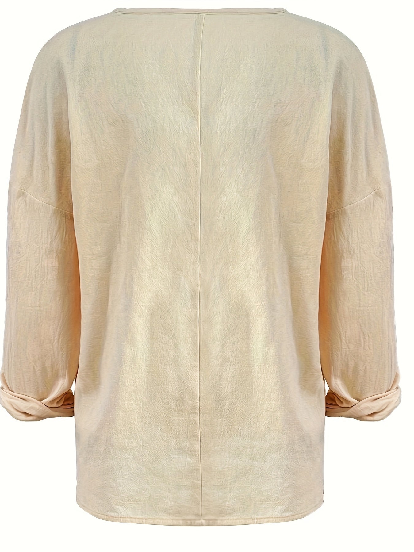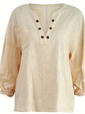 Sale Solid Button Notched Neck Blouse, Casual Long Sleeve Loose Top With Pocket
