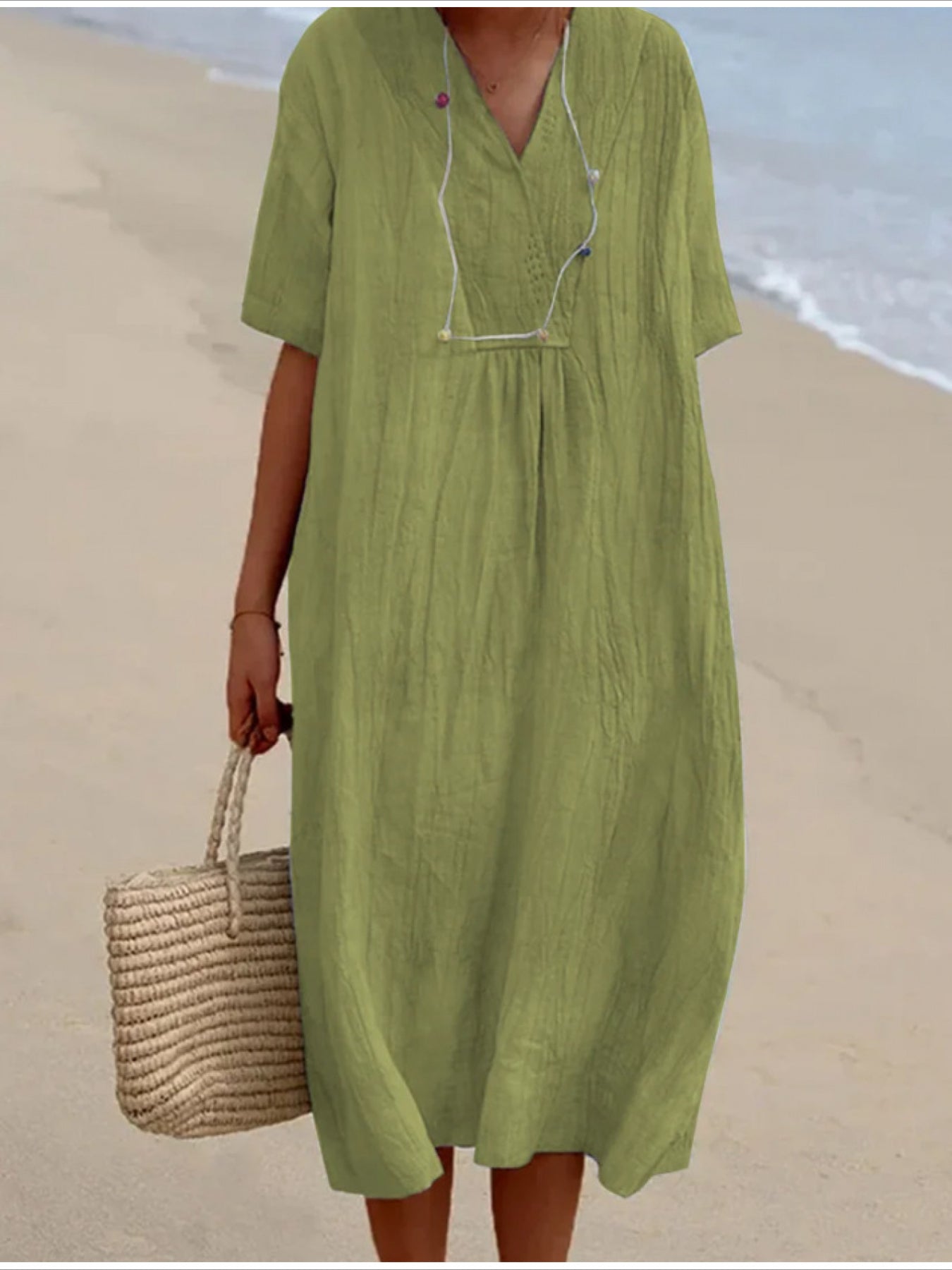 Solid Color And Linen Elegant Short Sleeves leisure Slimming Dress