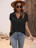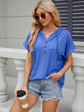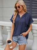 Sale Solid Pleated Trim Blouse, Casual Crew Neck Short Sleeve Blouse