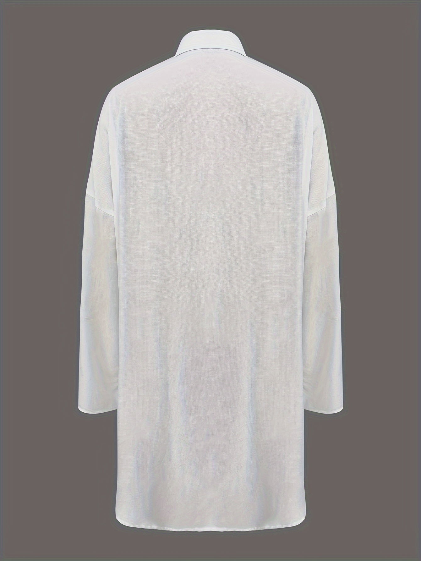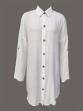 Sale Solid Color Button Front Shirt Dress, Casual Long Sleeve Lapel Dress
