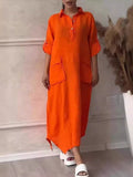 Solid Color Casual Shawl Collar Plain Loose Dress