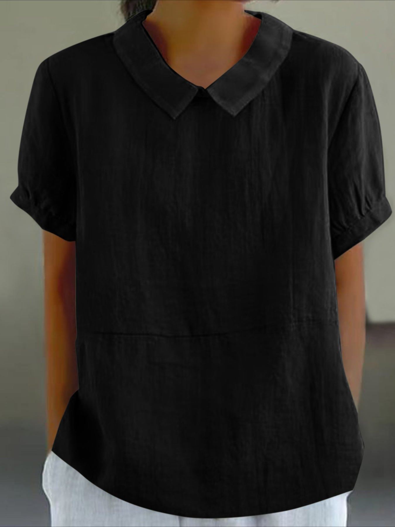 Solid Color Loose Lapel Short Sleeve Cotton Top