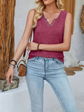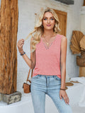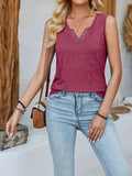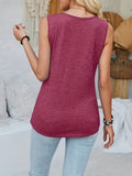 Solid Color Ring Decor Tank Top, Versatile Notched Neck Sleeveless Loose Top
