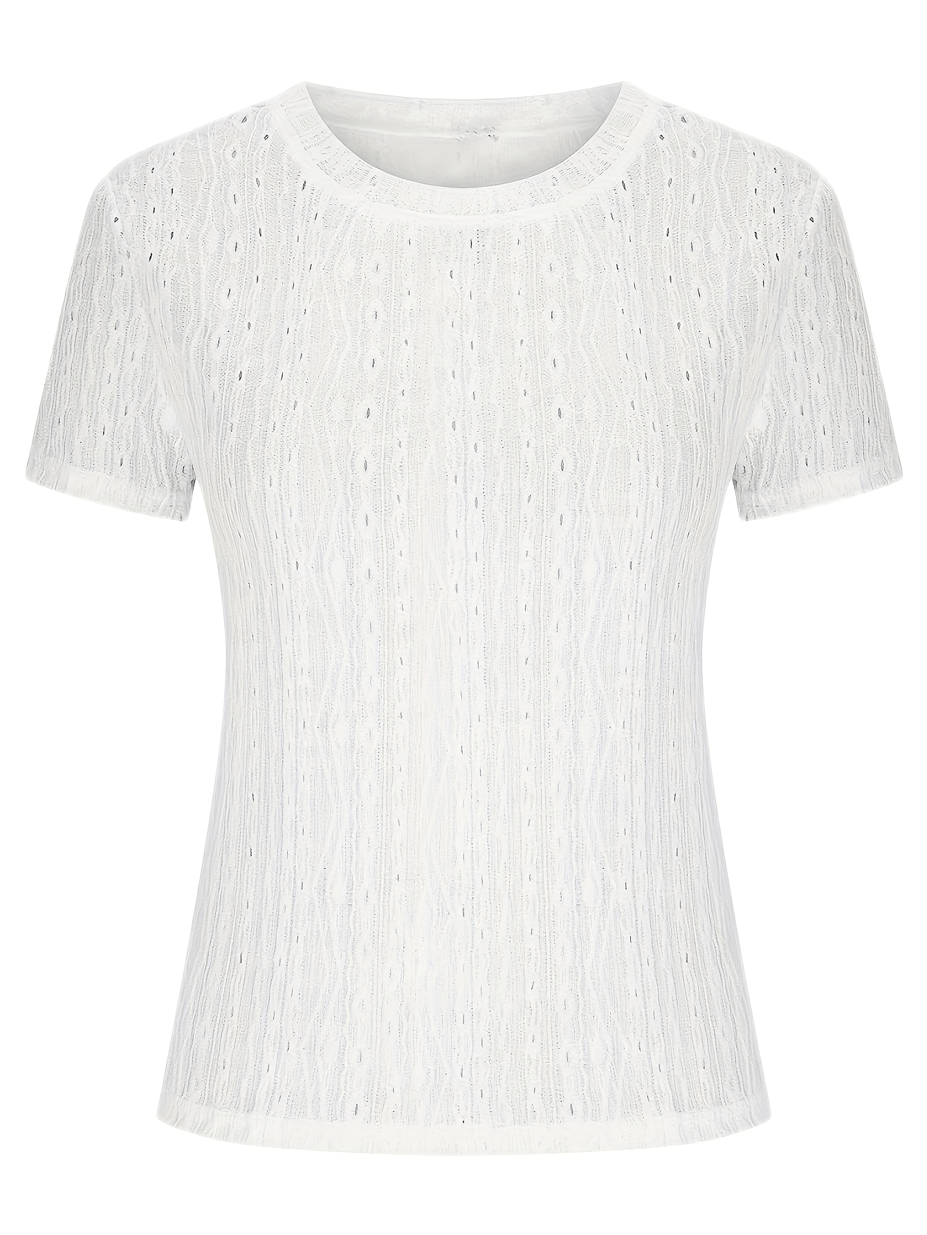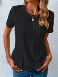 Solid Color Short Sleeve Hollow Out Round Neck T-Shirt