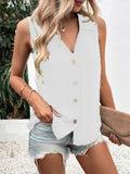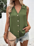 Solid Color V-Neck Sleeveless Button Tank Tops