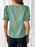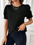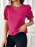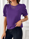 Solid Crew Neck Blouse, Elegant Puff Sleeve Blouse