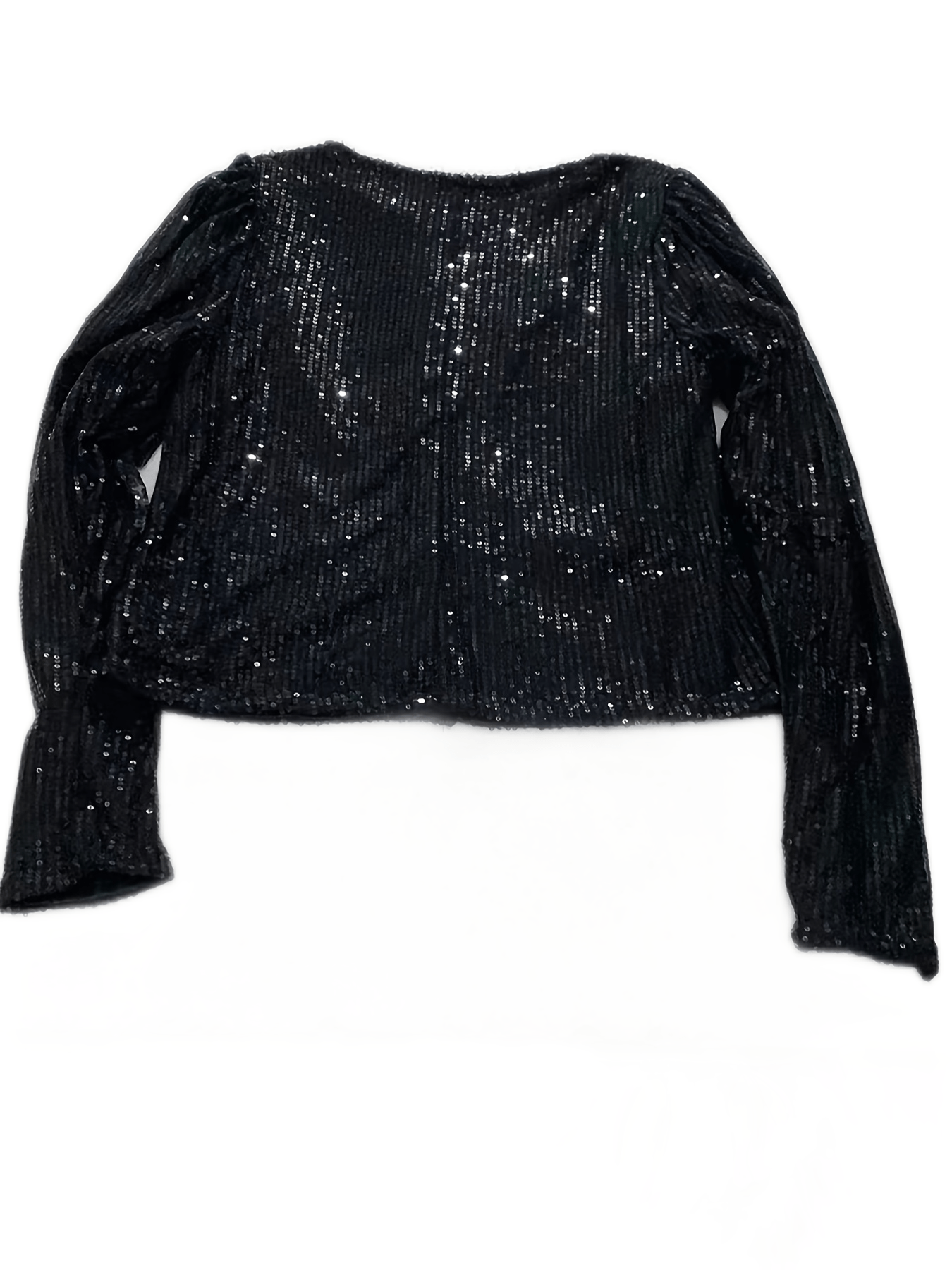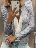 Sale Solid Crew Neck Sequined Jacket, Long Sleeve Casual Every Day Top