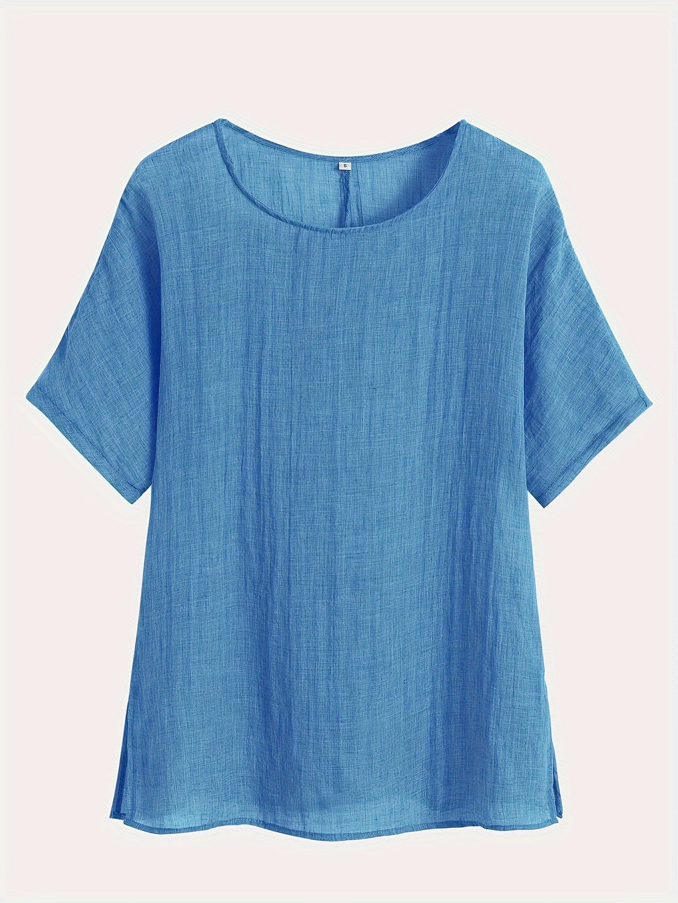 Solid Crew Neck T-Shirt, Casual Short Sleeve Loose Comfy Top