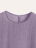 Sale Solid Pleated Trim Blouse, Casual Crew Neck Short Sleeve Blouse