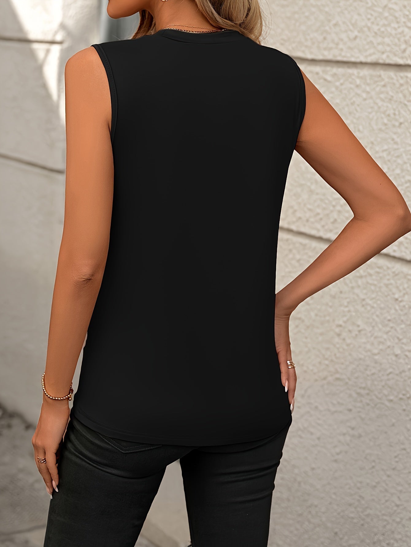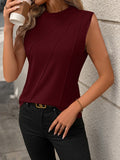 Sale Textured Mock Neck Tank Top, Casual Sleeveless Top