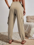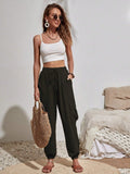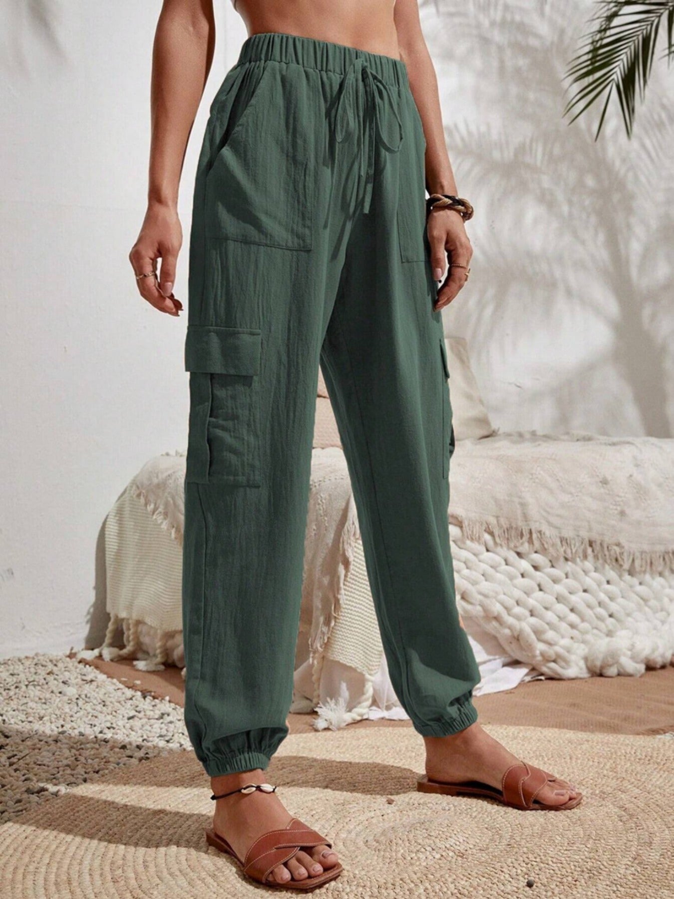Sale Solid Drawstring Pants, Casual Slant Pockets Cargo Pants