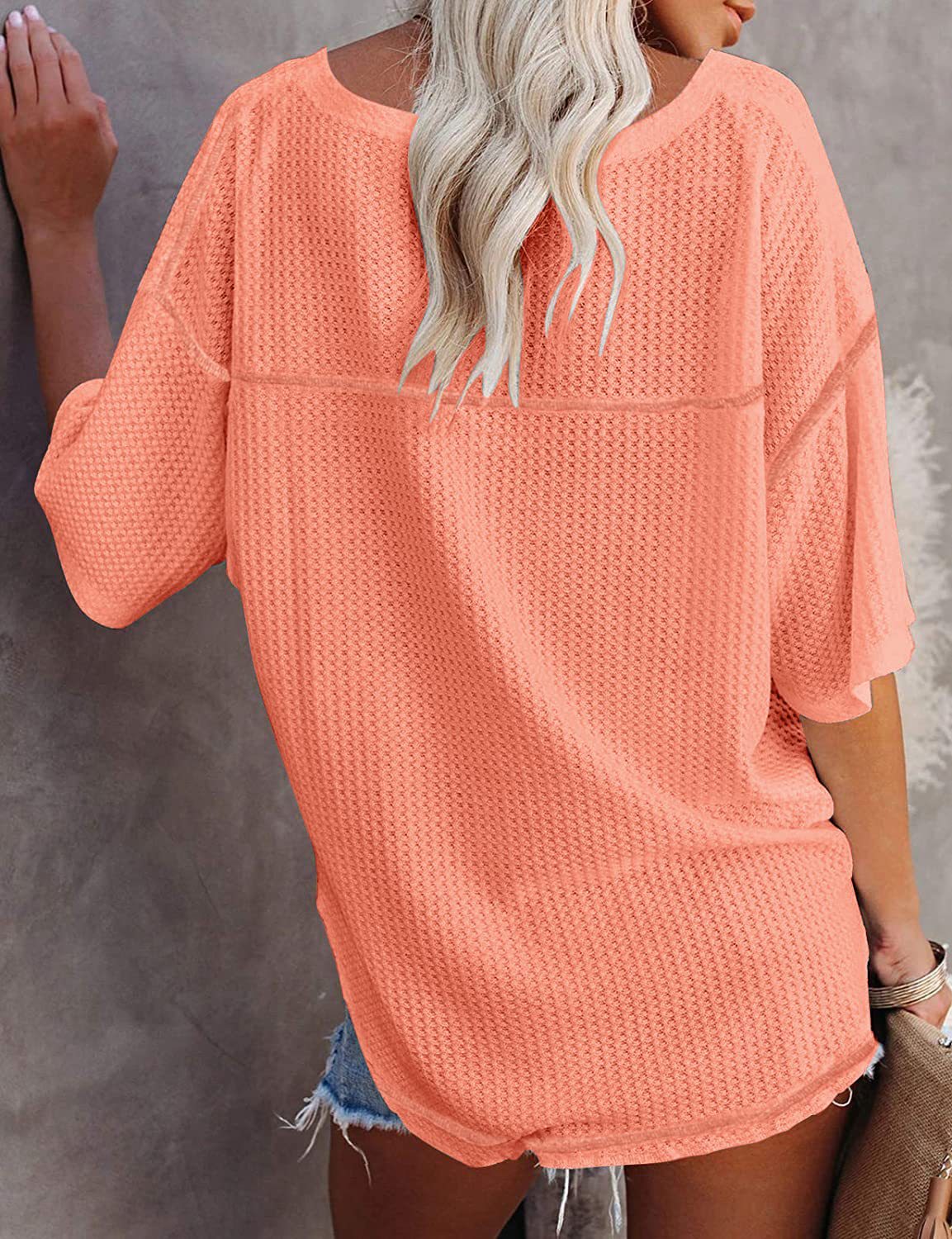 Sale Solid Elegant V Neck T-Shirt, Drop Shoulder Casual Top