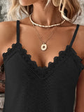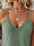 Solid Lace Stitching Eyelet Top, Vintage V-neck Sleeveless Cami Top
