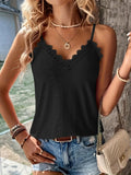 Sale Solid Lace Stitching Eyelet Top, Vintage V-neck Sleeveless Cami Top