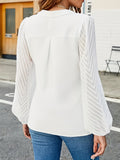 Solid Notched Neck Blouse, Elegant Lantern Sleeve Blouse