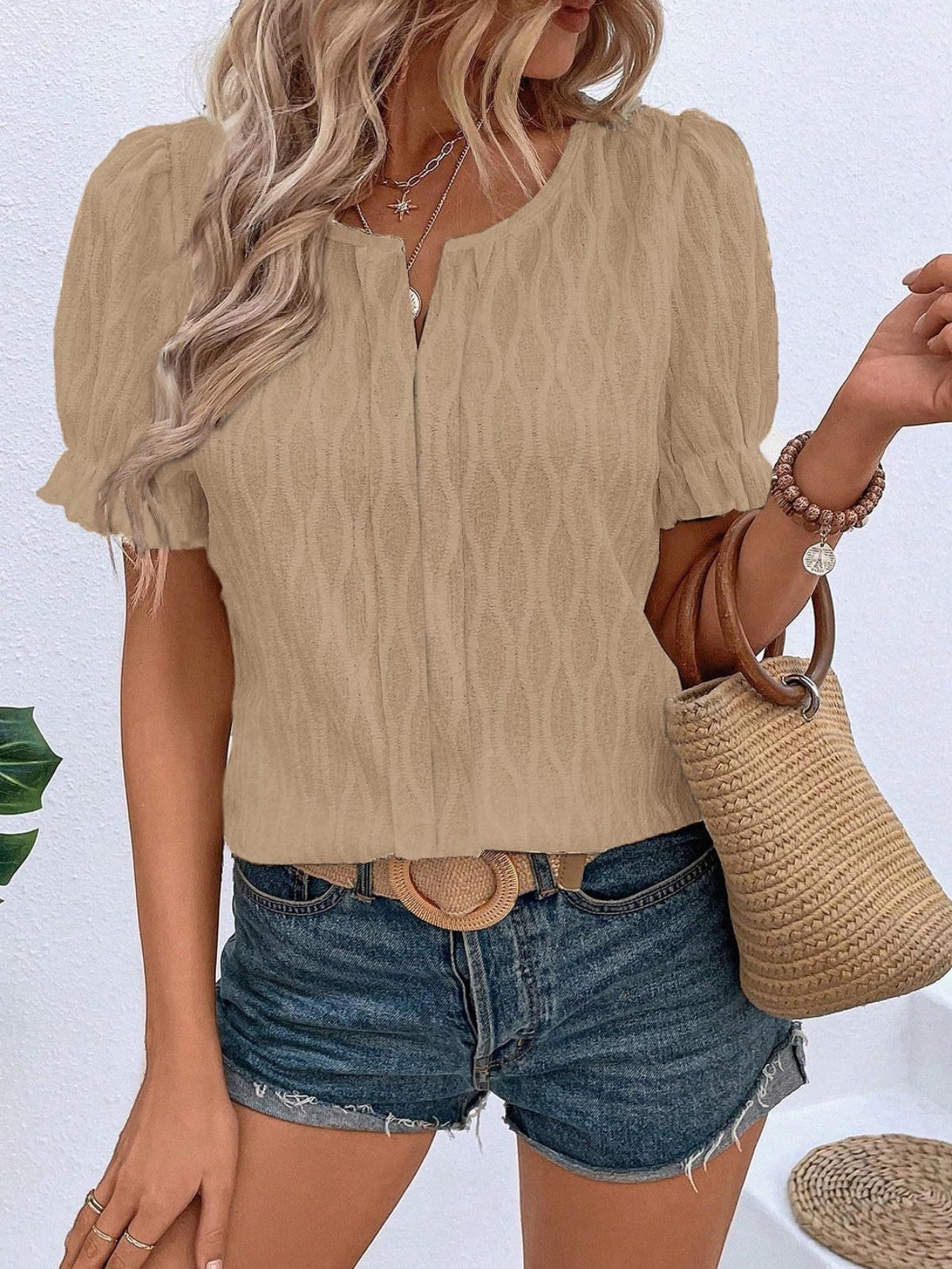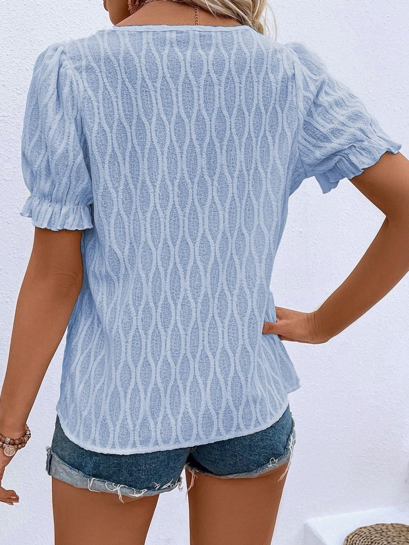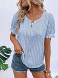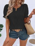 Solid Notched Neck Puff Sleeve Blouse