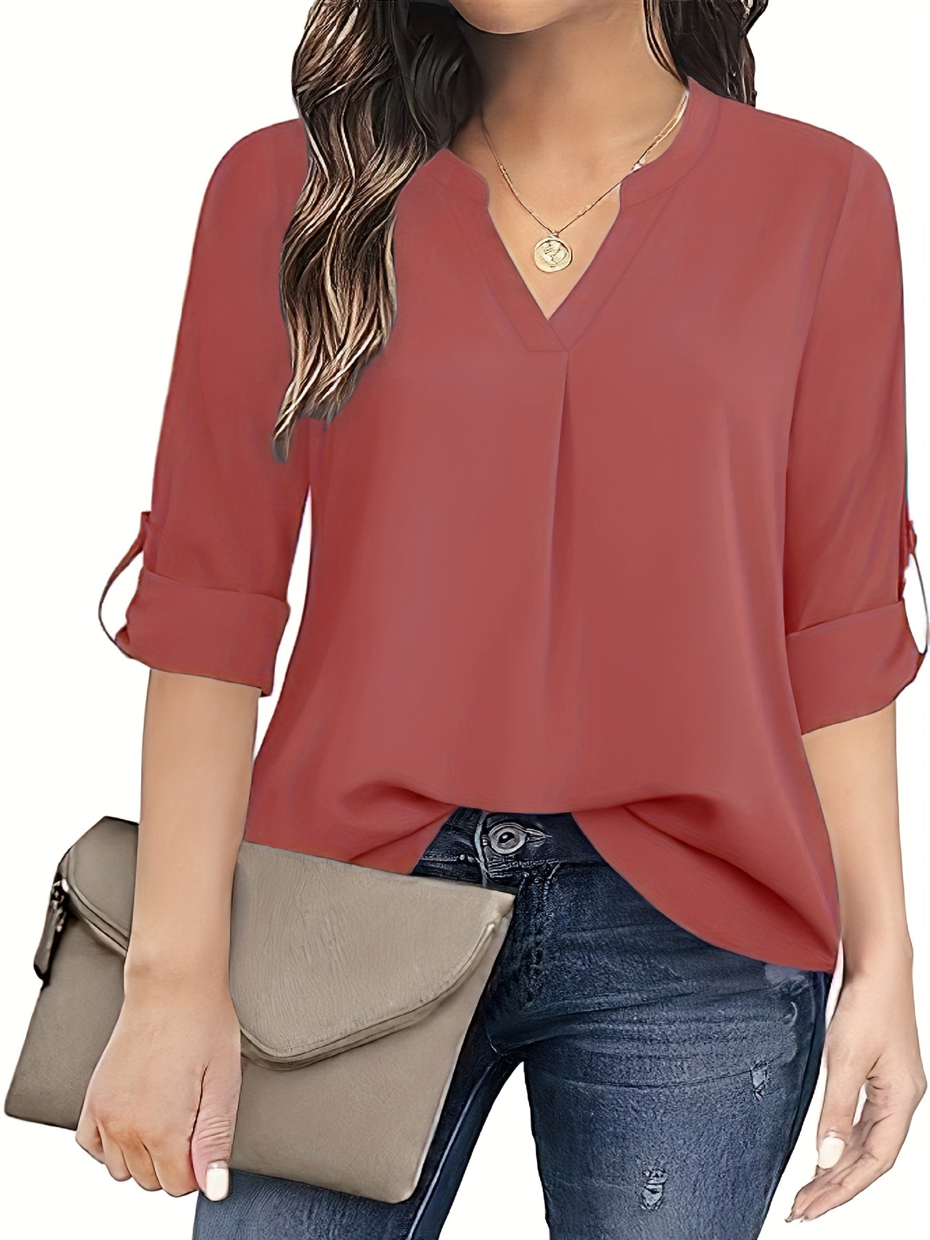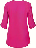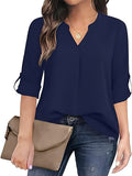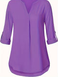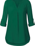 Sale Solid Simple Blouse, Casual V Neck Long Sleeve Blouse