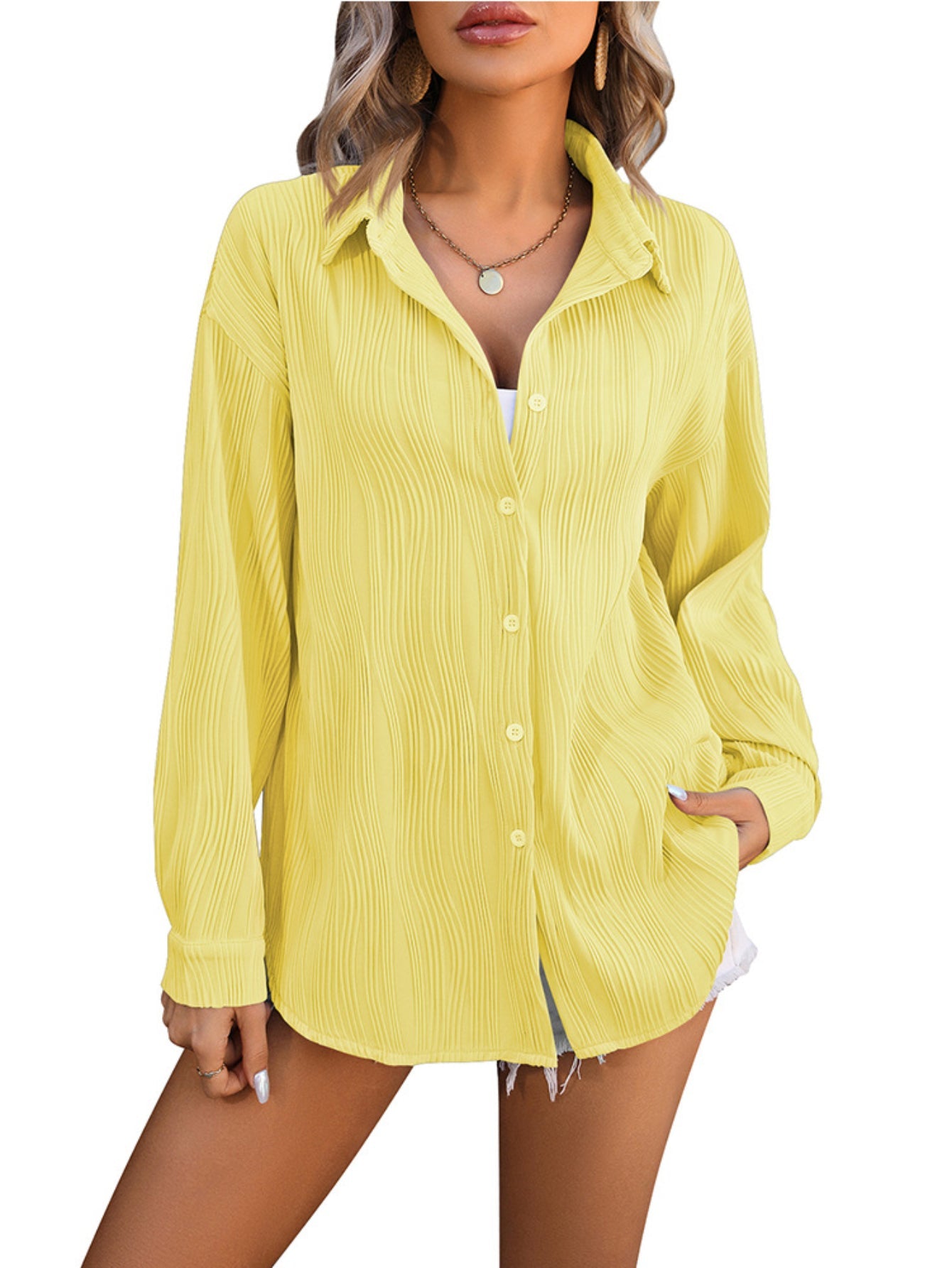 Sale Solid Textured Button Front Shirt, Vintage Long Sleeve Shirt