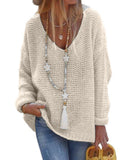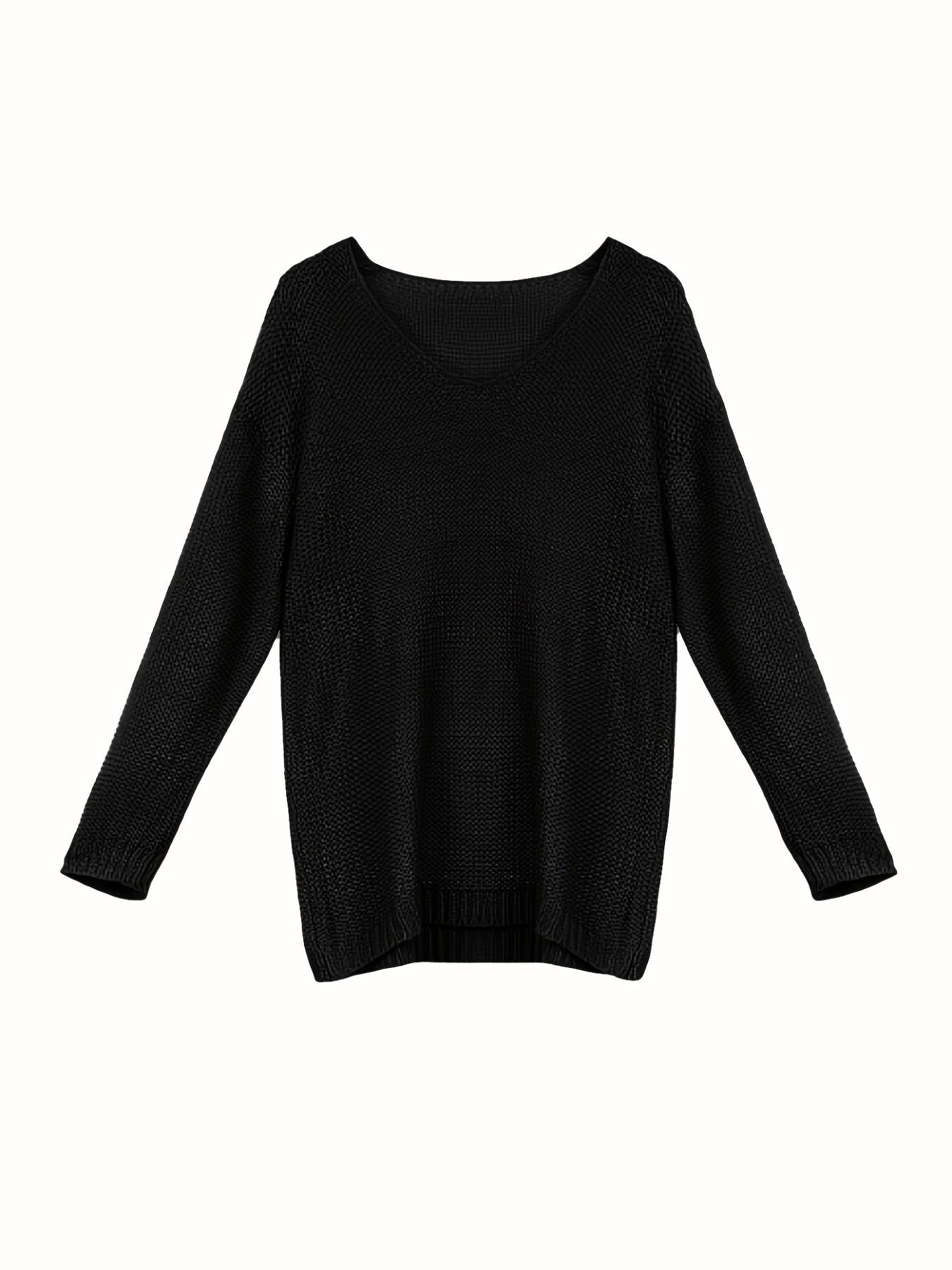 Solid V Neck Knitted Pullover Sweater, Casual Long Sleeve Sweater