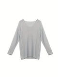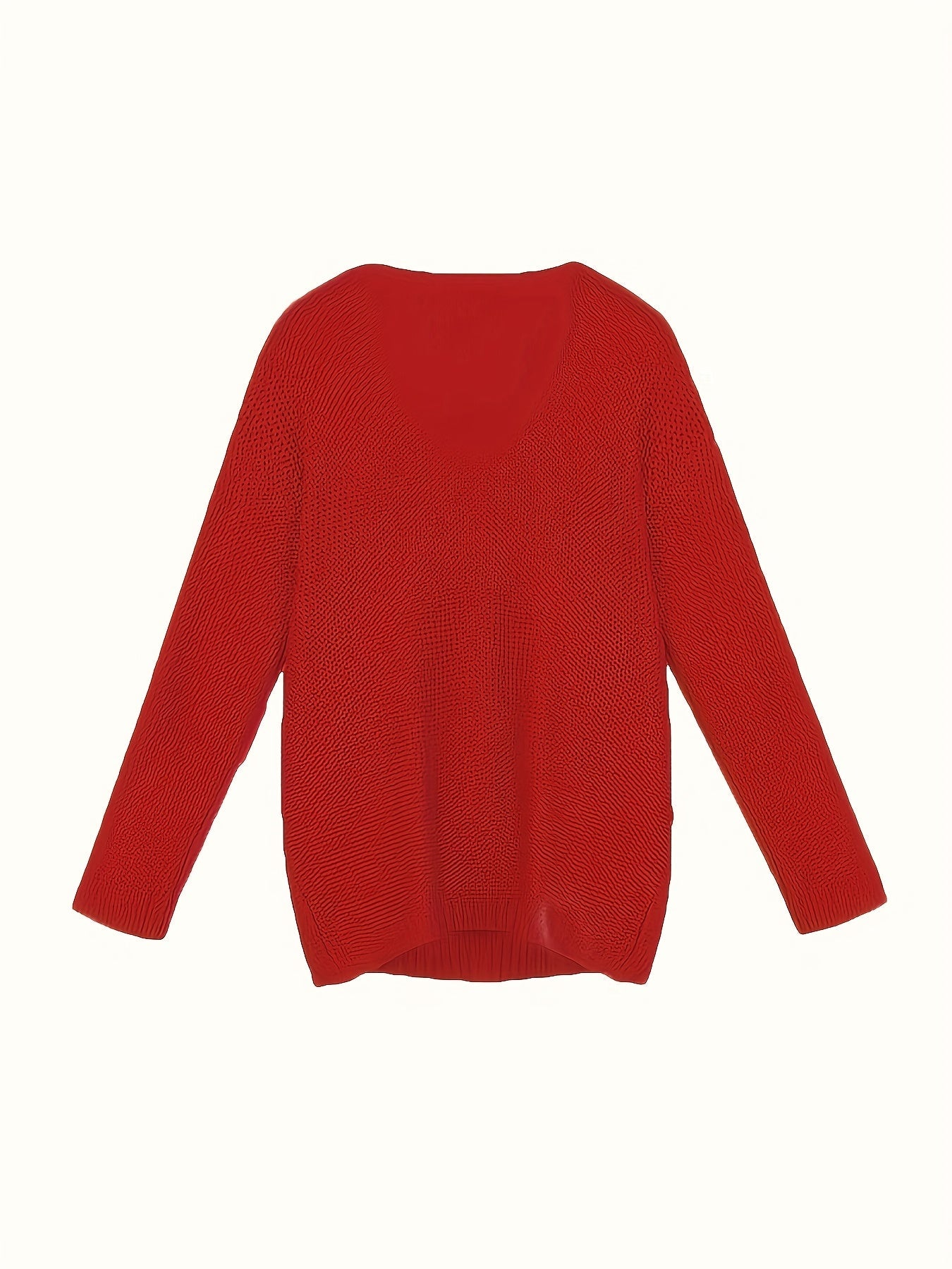 Sale Solid V Neck Knitted Pullover Sweater, Casual Long Sleeve Sweater