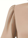 Sale Solid V Neck Simple Blouse, Elegant Long Sleeve Ruched Blouse