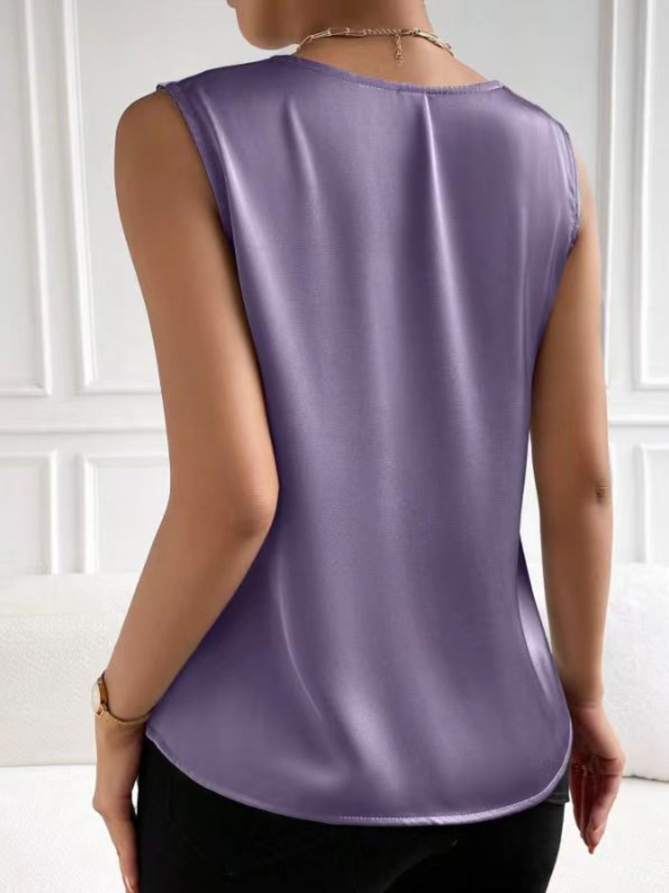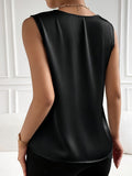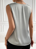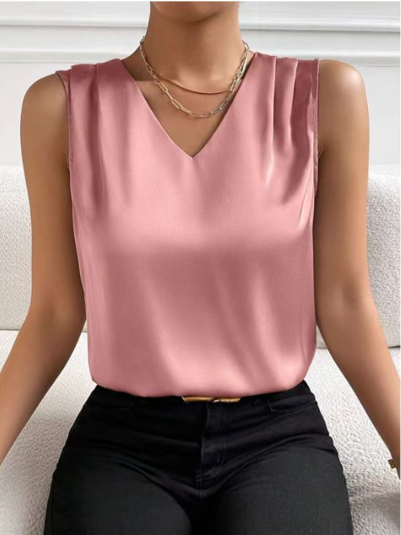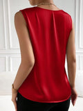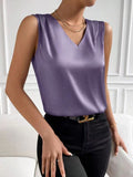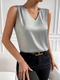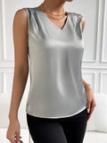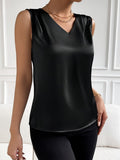Sale Solid V Neck Tank Top, Elegant Sleeveless Top