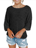 Sale Striped Crew Neck Knitted Sweater, Casual 3/4 Sleeve Loose Pullover Sweater