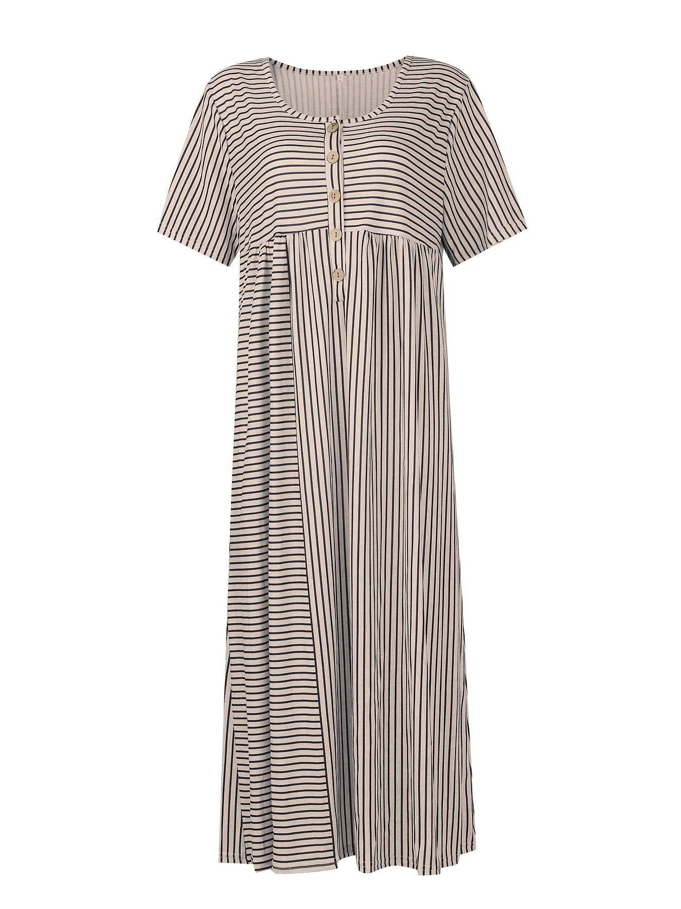 Sale Striped Print Button Front Dress, Casual Short Sleeve Simple Dress