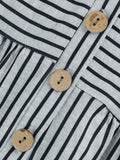 Striped Print Button Front Dress, Casual Short Sleeve Simple Dress