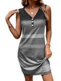 Striped Print Buttons Loose Pullover Sleeveless Mini Dress