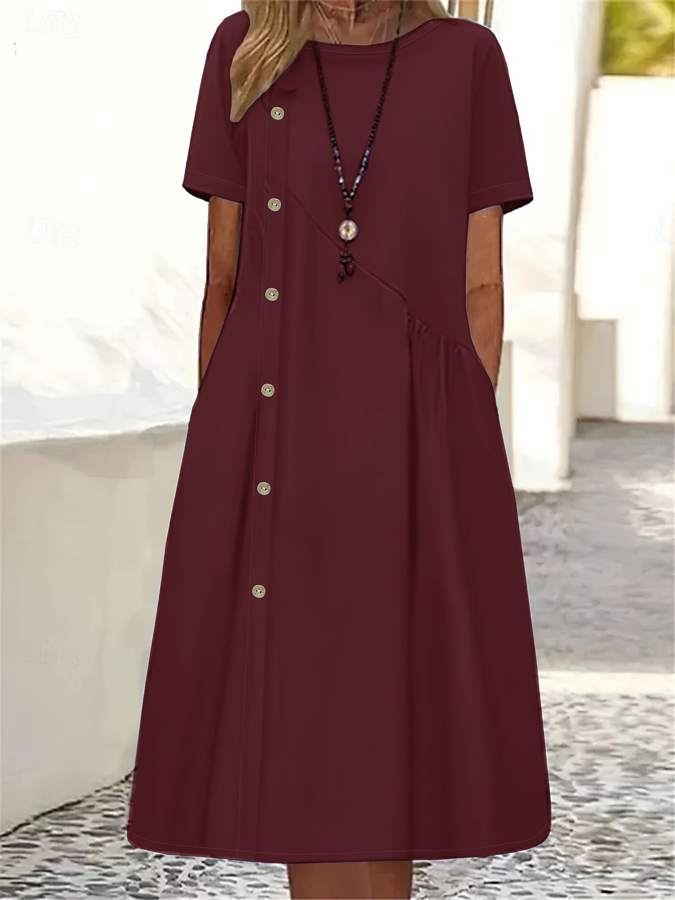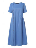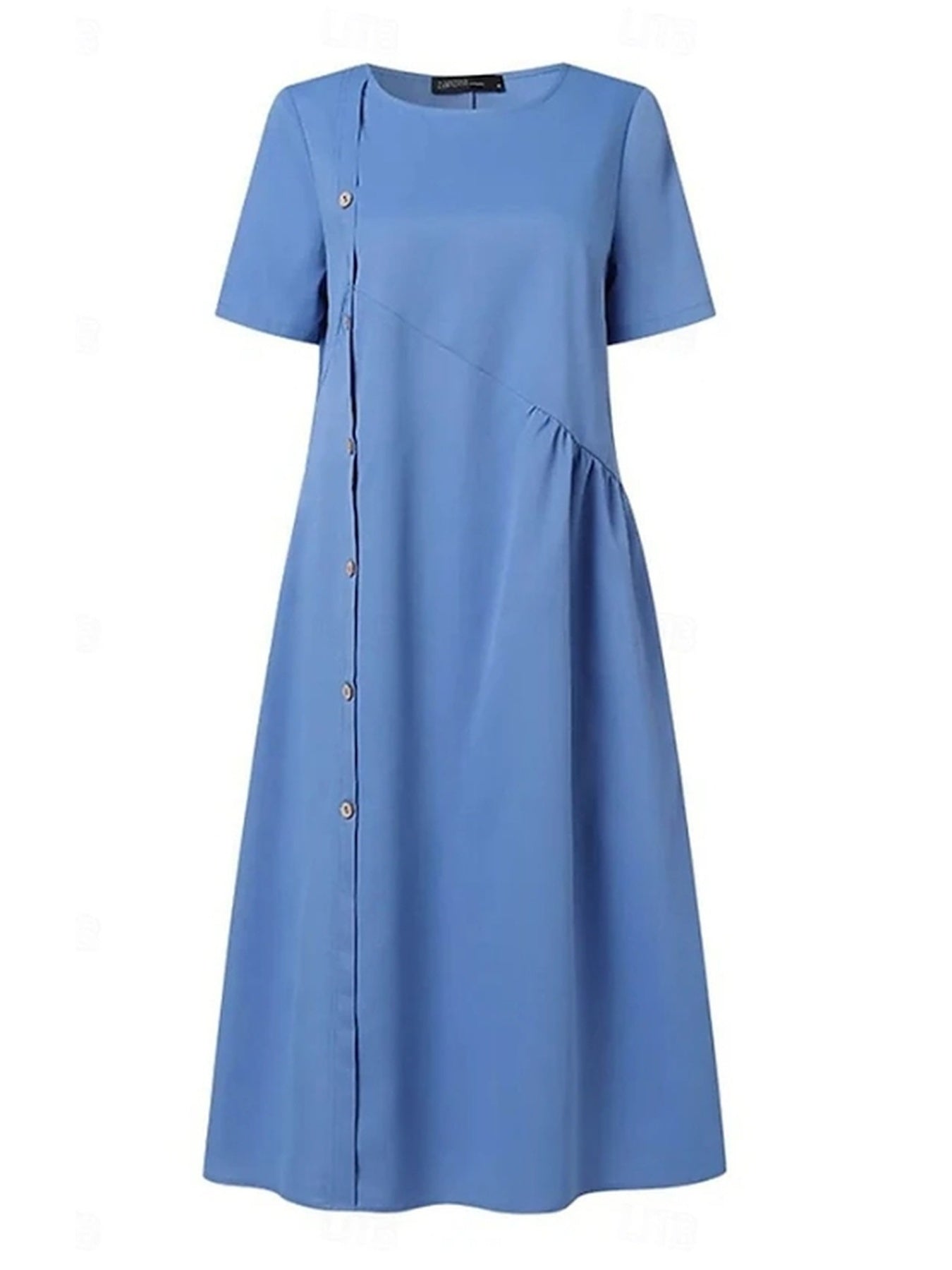 Polyester Women's Summer Dress | Light Blue Casual A-Line Mini with Decorative Buttons