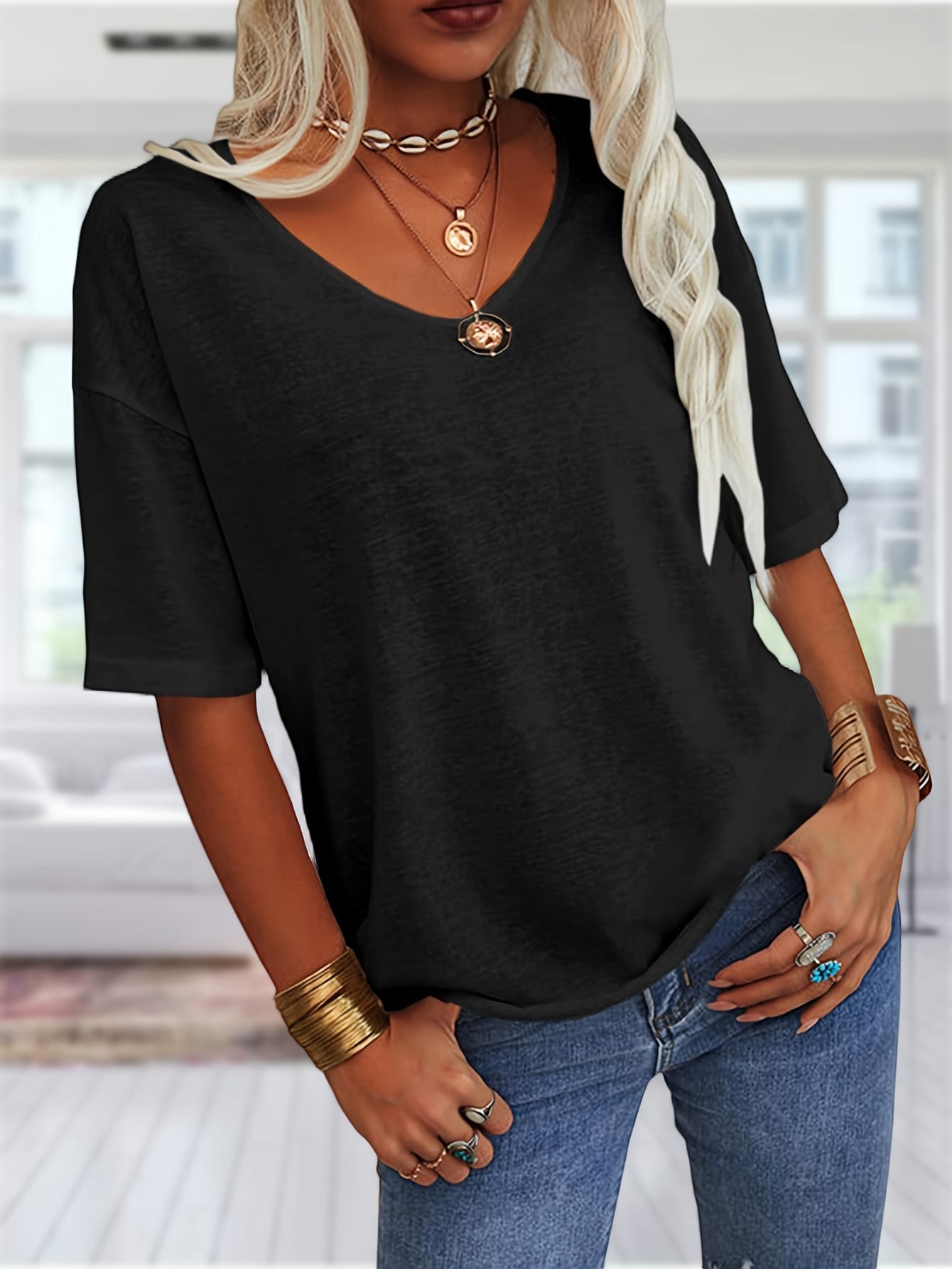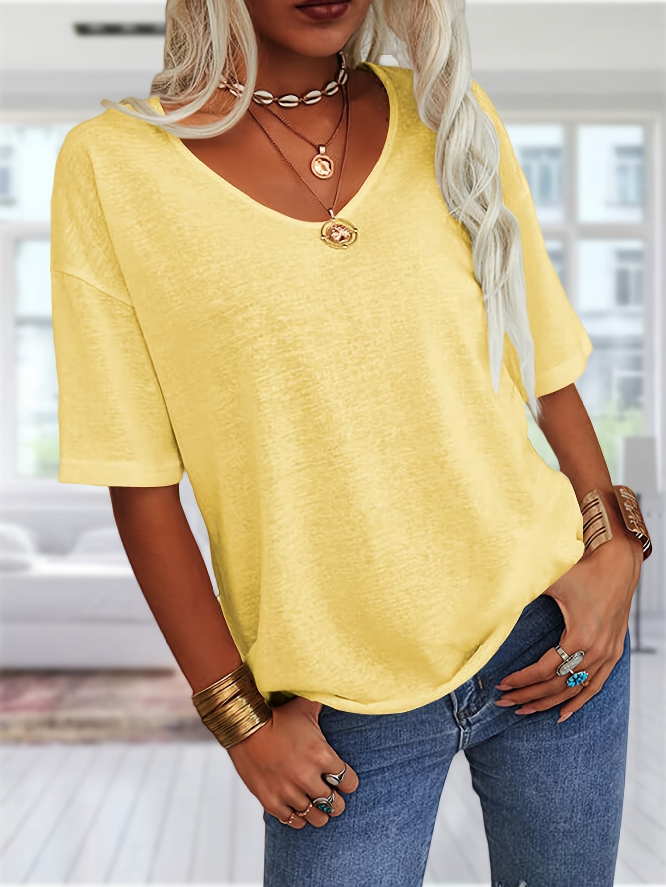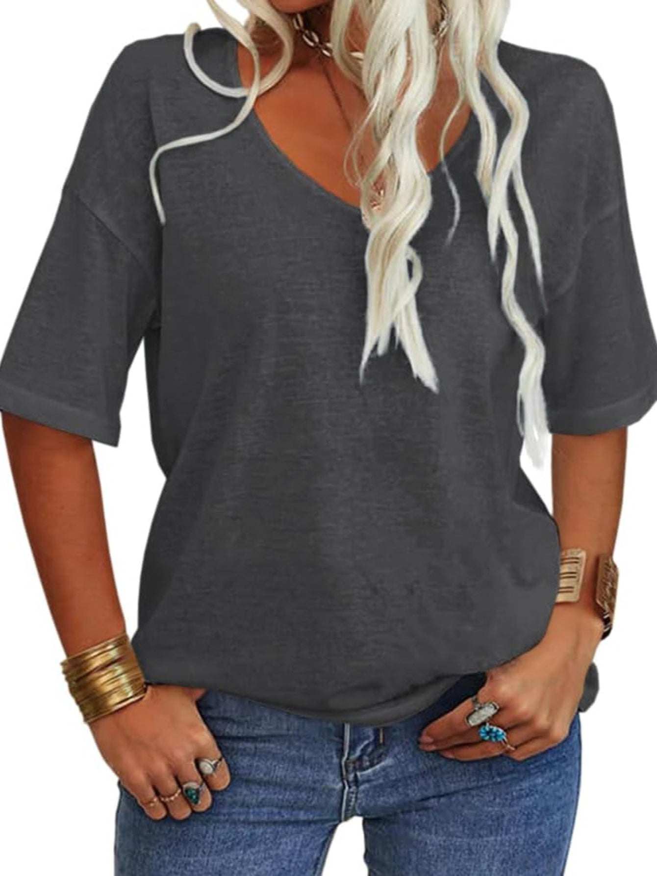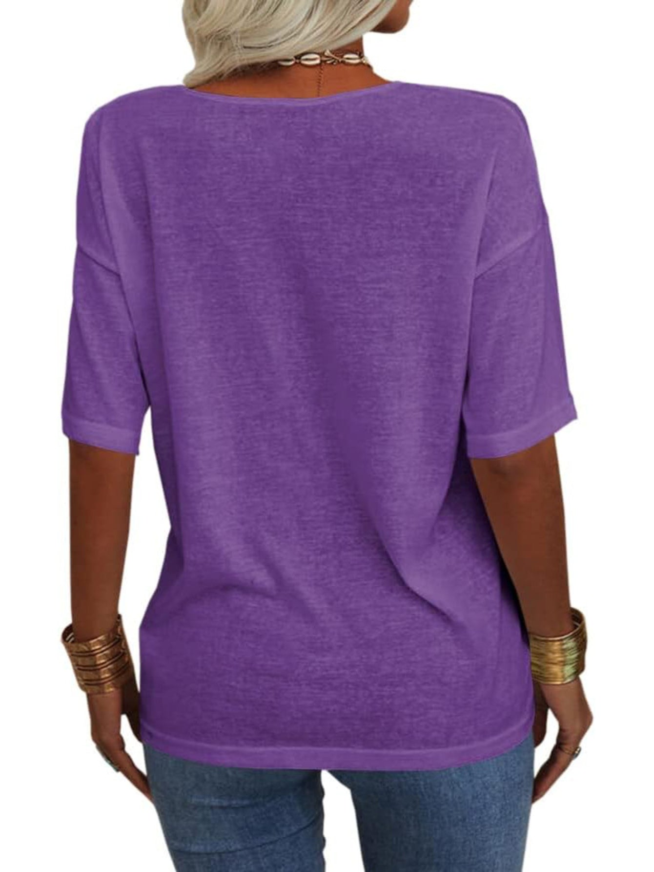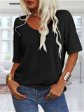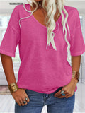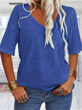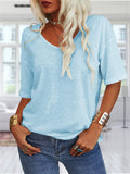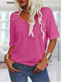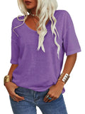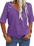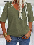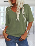 Summer Solid Half Sleeves V-neck Women's Casual Loose Basic T Shirt Tunics Tops