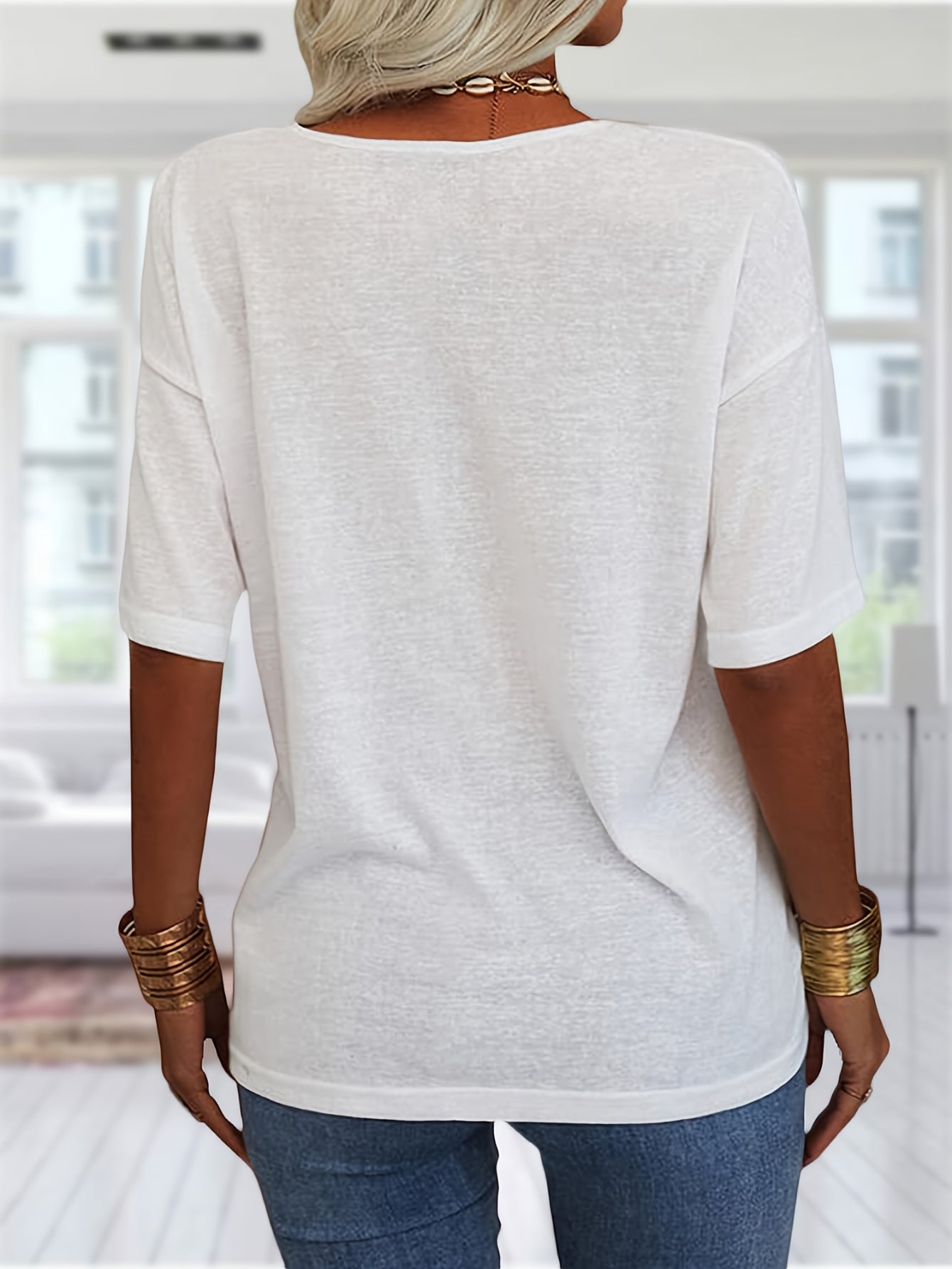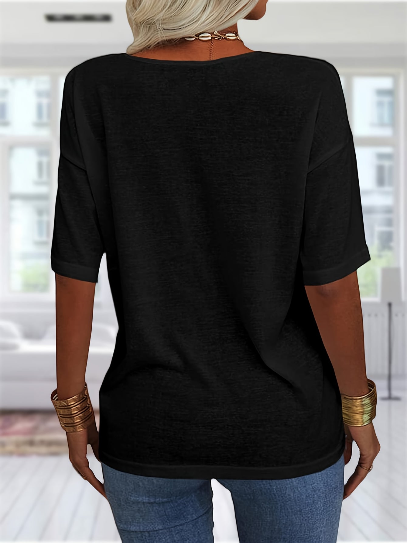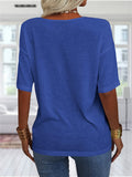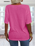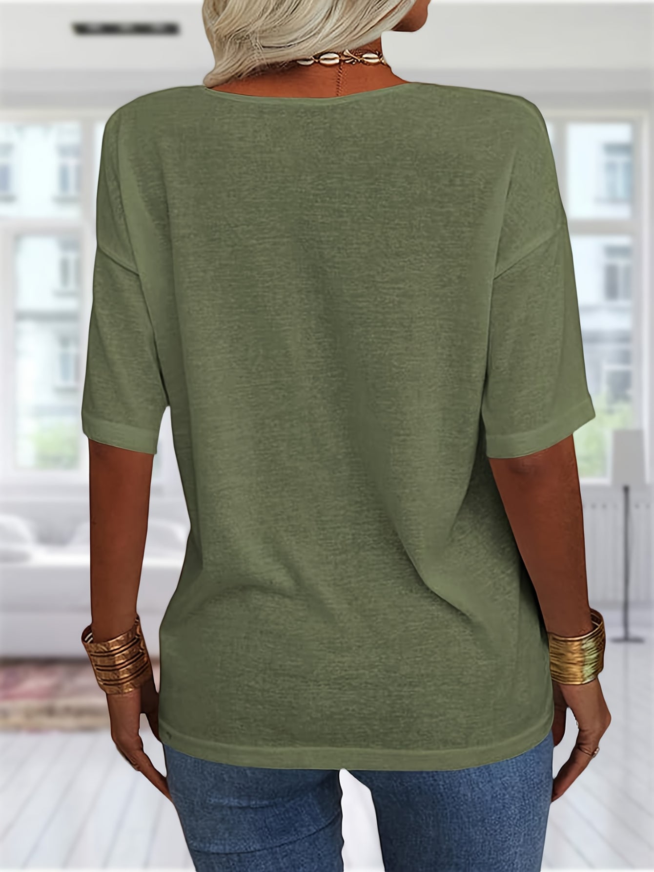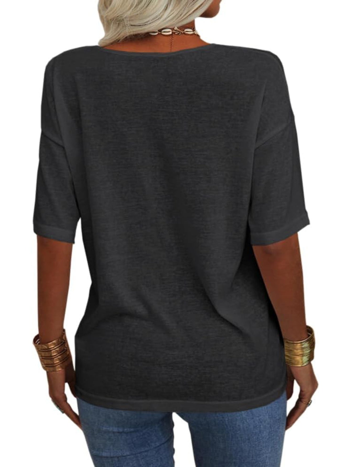 Summer Solid Half Sleeves V-neck Women's Casual Loose Basic T Shirt Tunics Tops