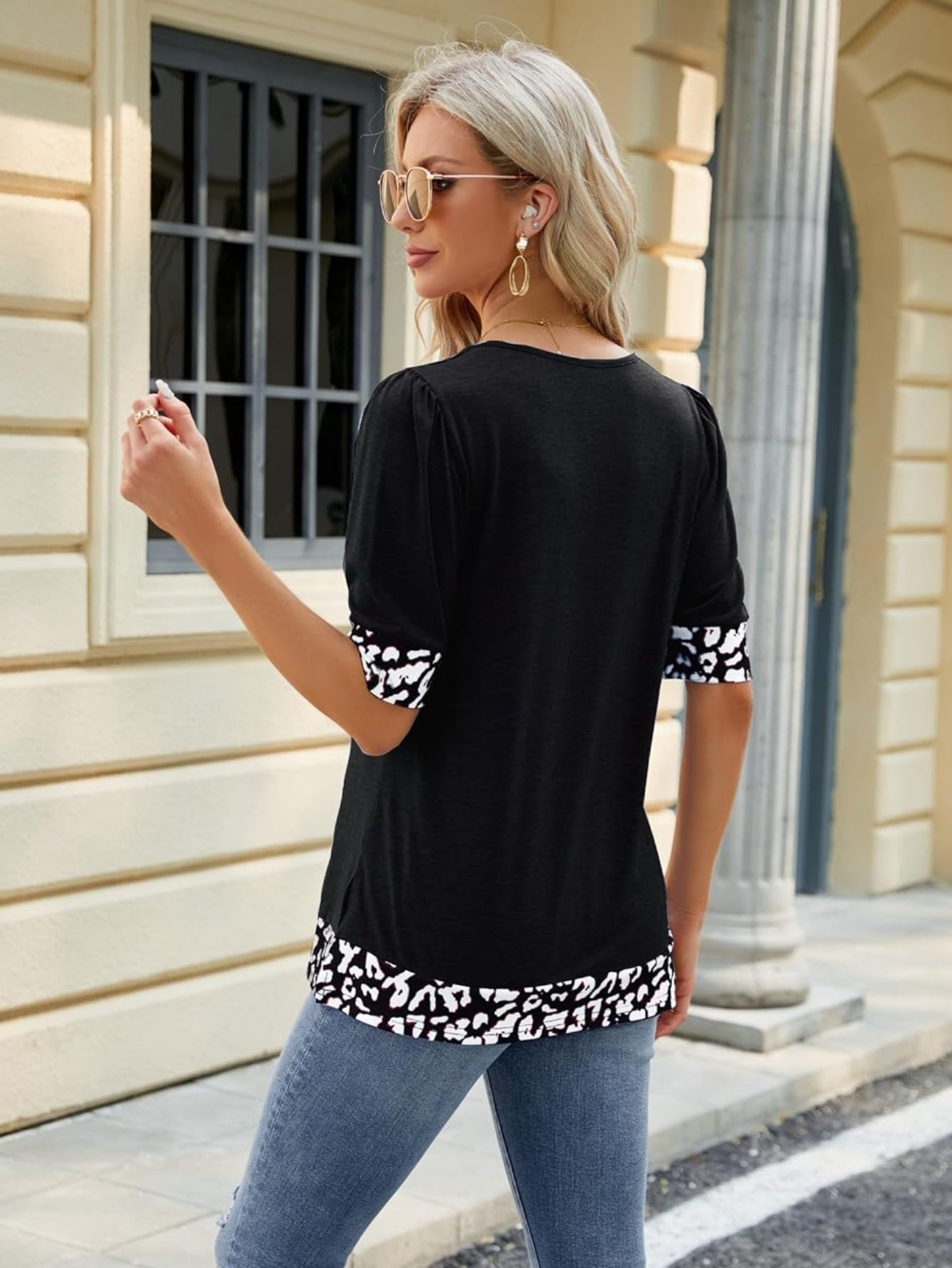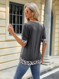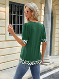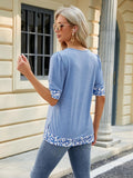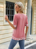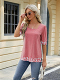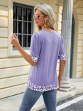 Sale Women's Feather Print Crew Neck Blouse - Casual Cut Out Short Sleeve Top