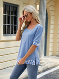 Sale Solid Pleated Trim Blouse, Casual Crew Neck Short Sleeve Blouse