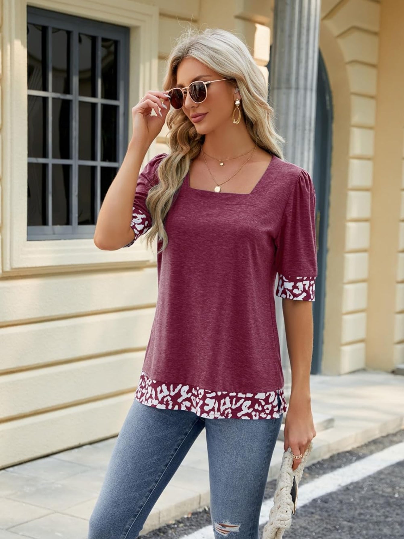 Square Neck Loose Fit Casual Half Sleeve T-Shirt
