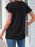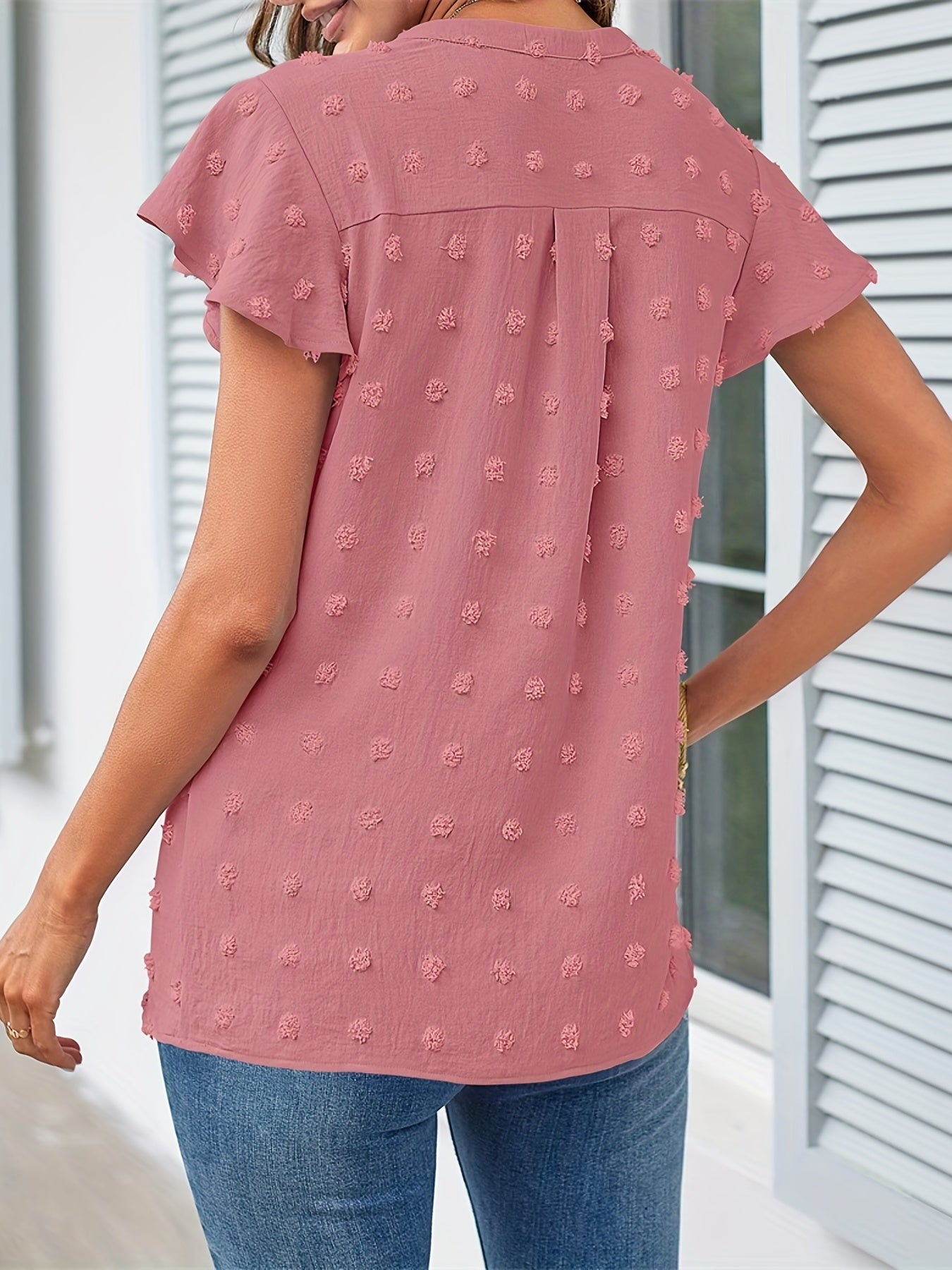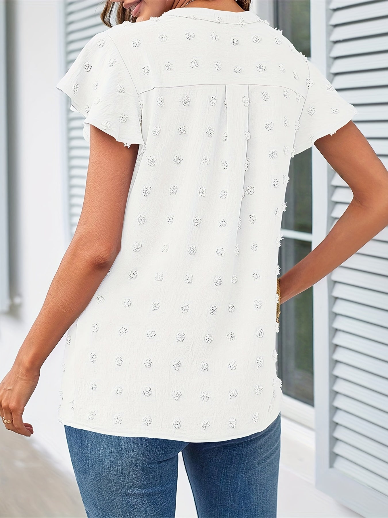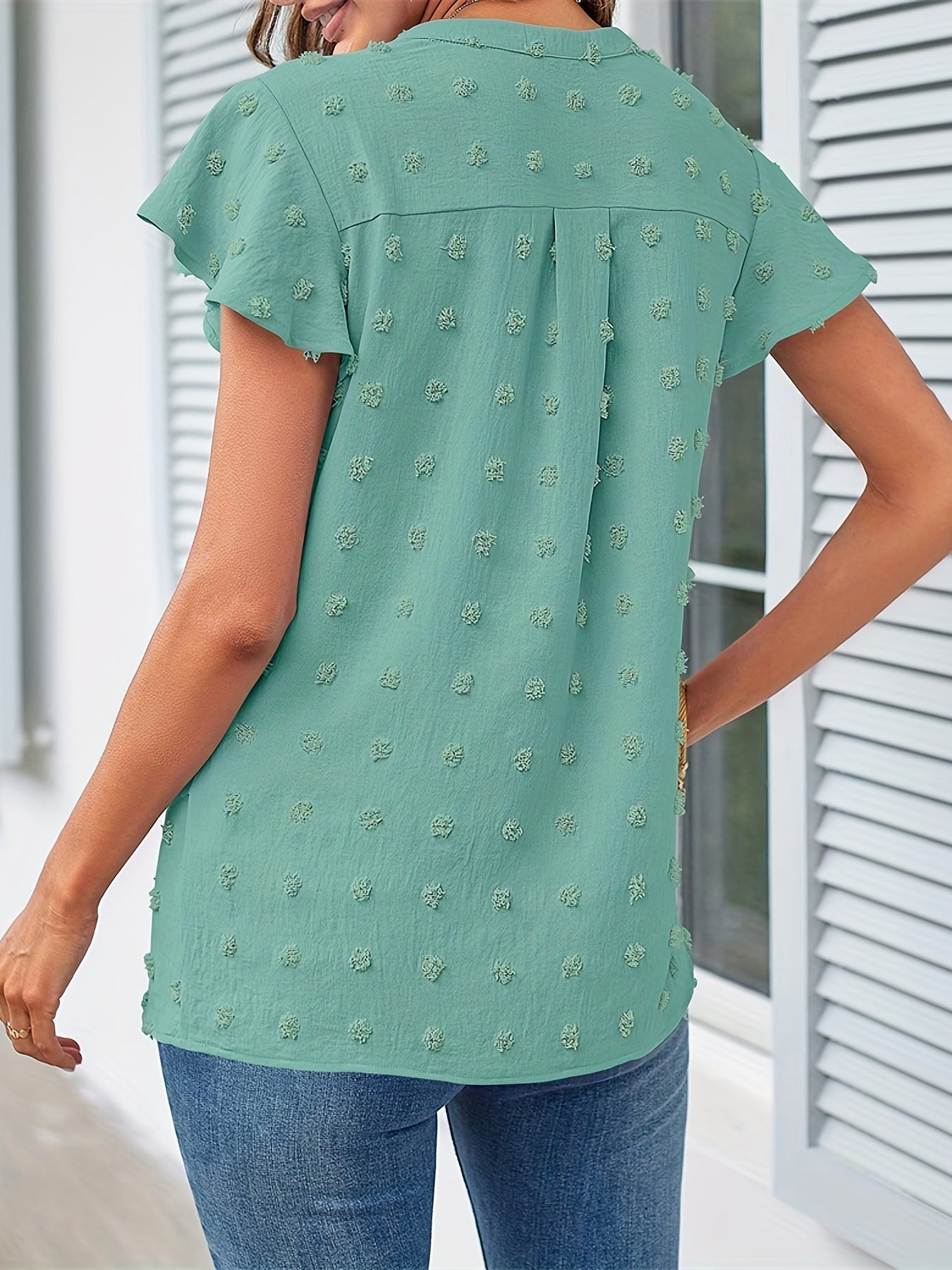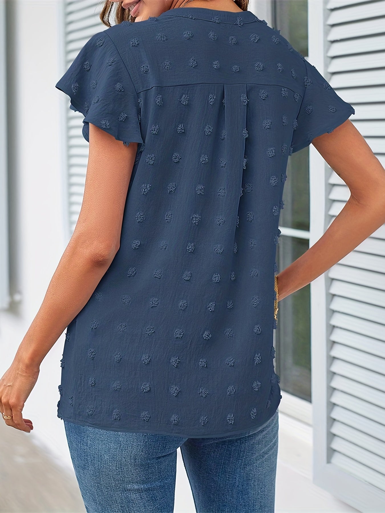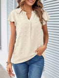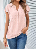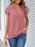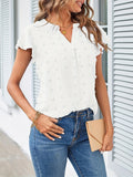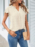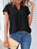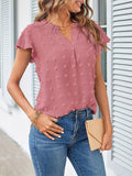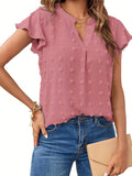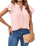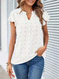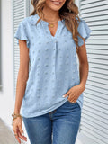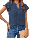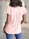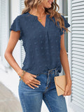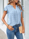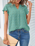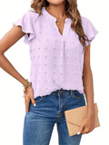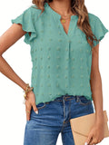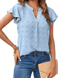 Swiss Dot V Neck Blouse, Casual Ruffle Sleeve Blouse