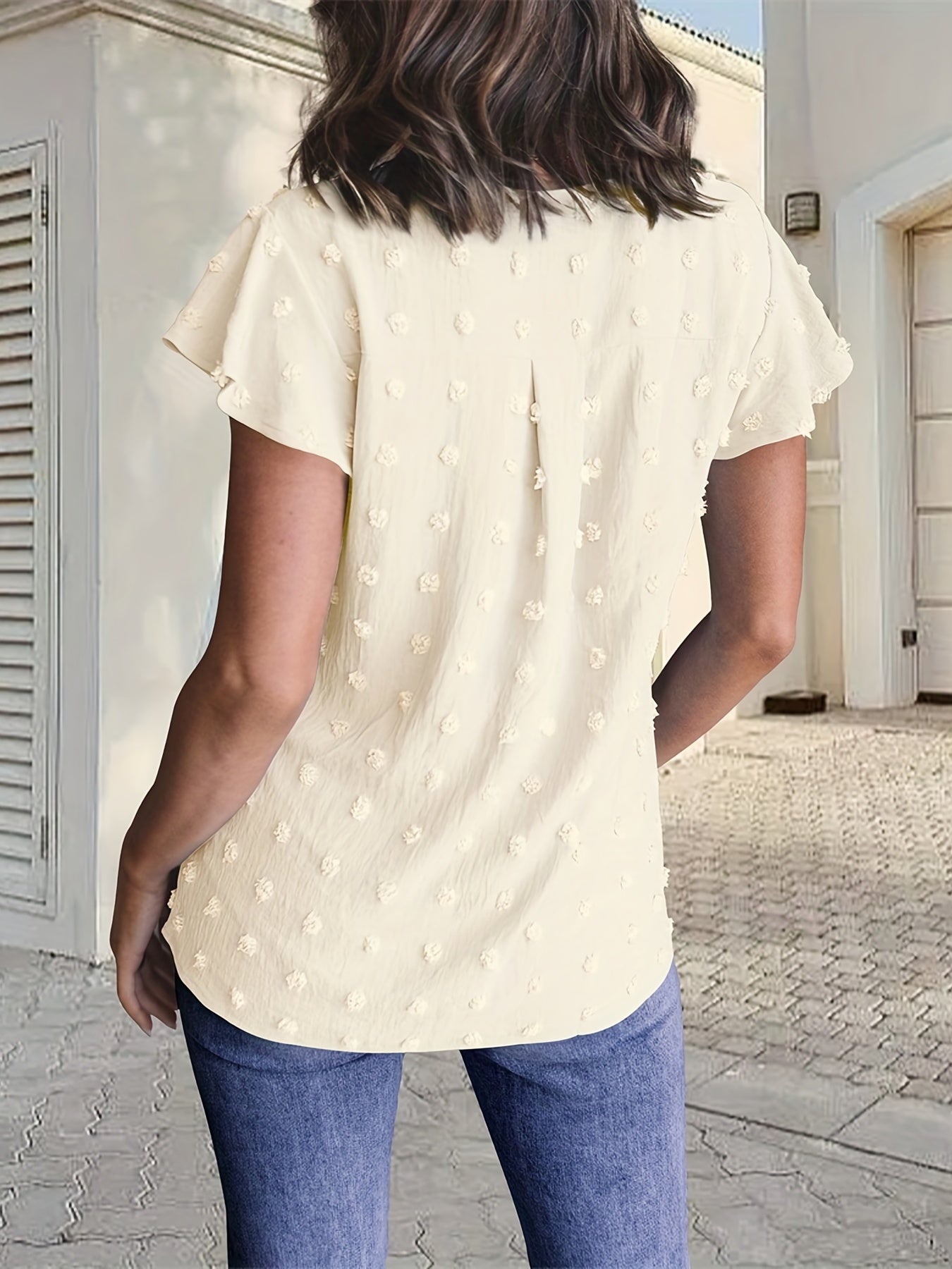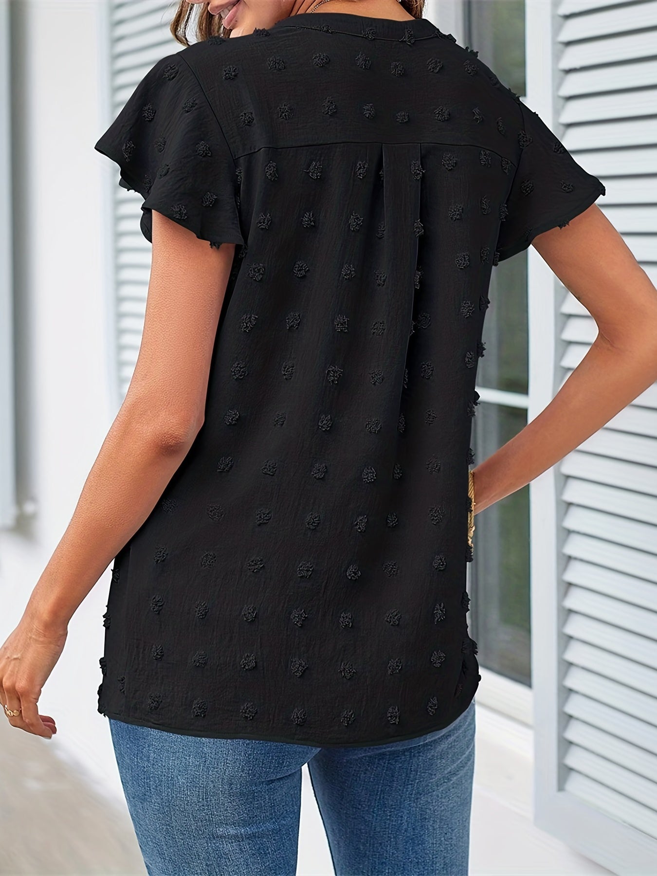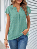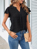 Sale Swiss Dot V Neck Blouse, Casual Ruffle Sleeve Blouse
