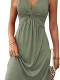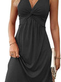 Twist Front V Neck Dress, Elegant Sleeveless Dress
