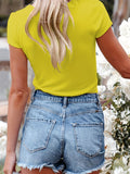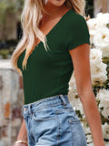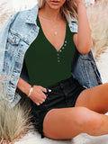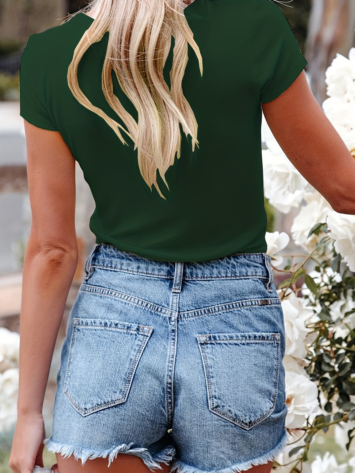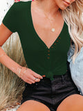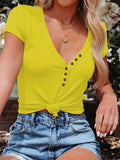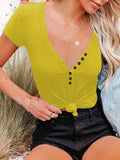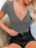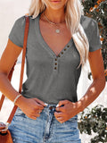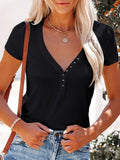 V Neck Button Front T-Shirt, Casual Short Sleeve T-Shirt