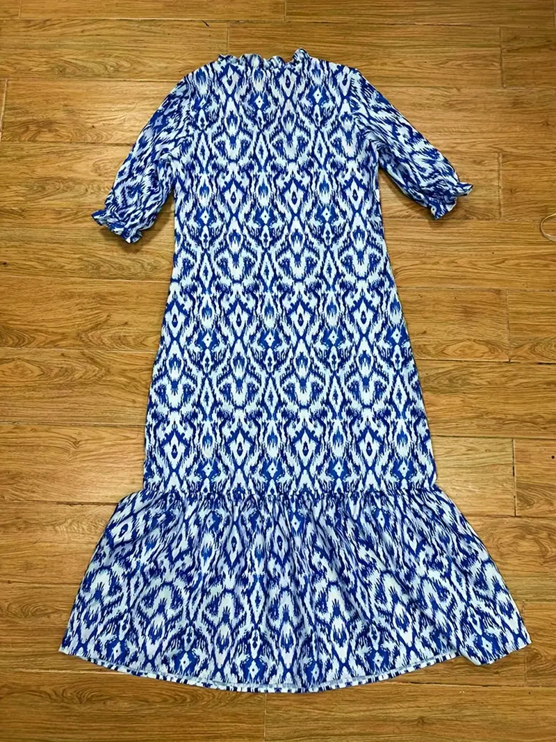 V Neck Half Sleeve Loose Floral Maxi Dress