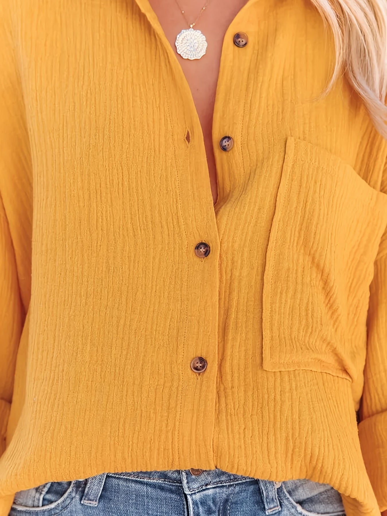 V-neck Loose Lapel Blouses, Casual Pocket Button Down Long Sleeve Fashion Shirts Tops