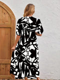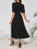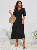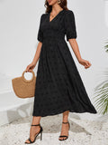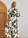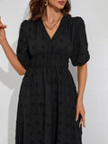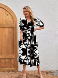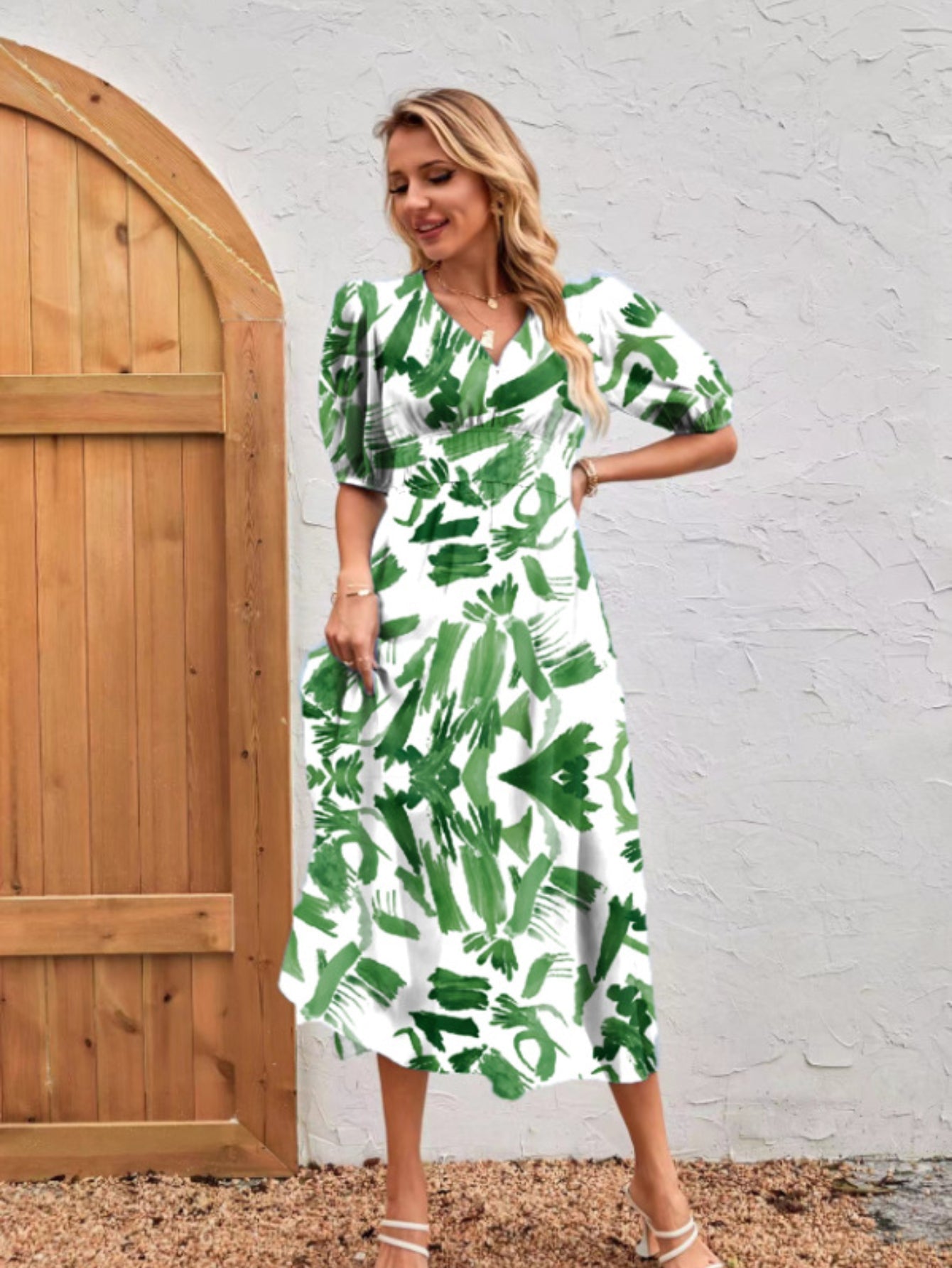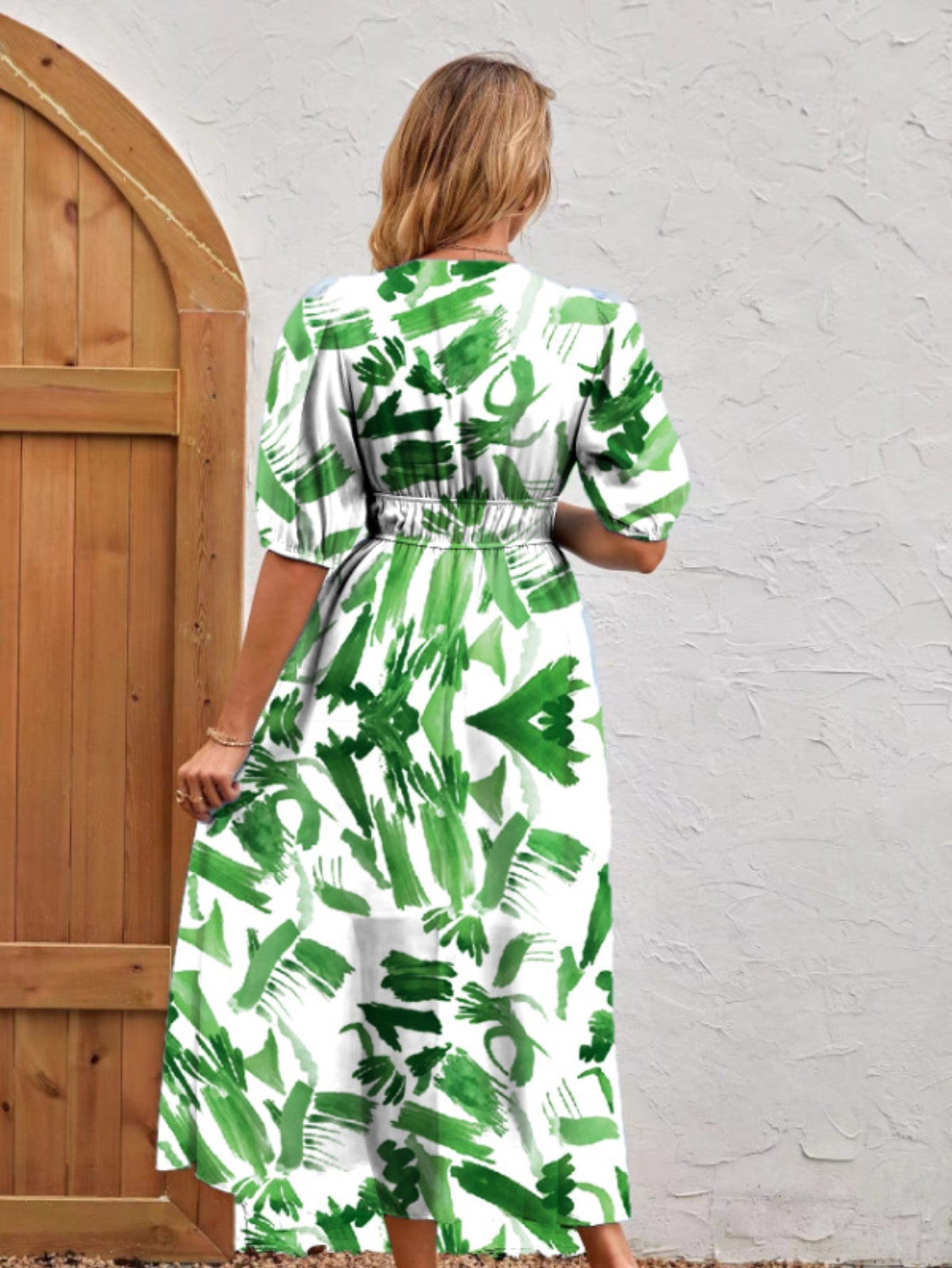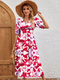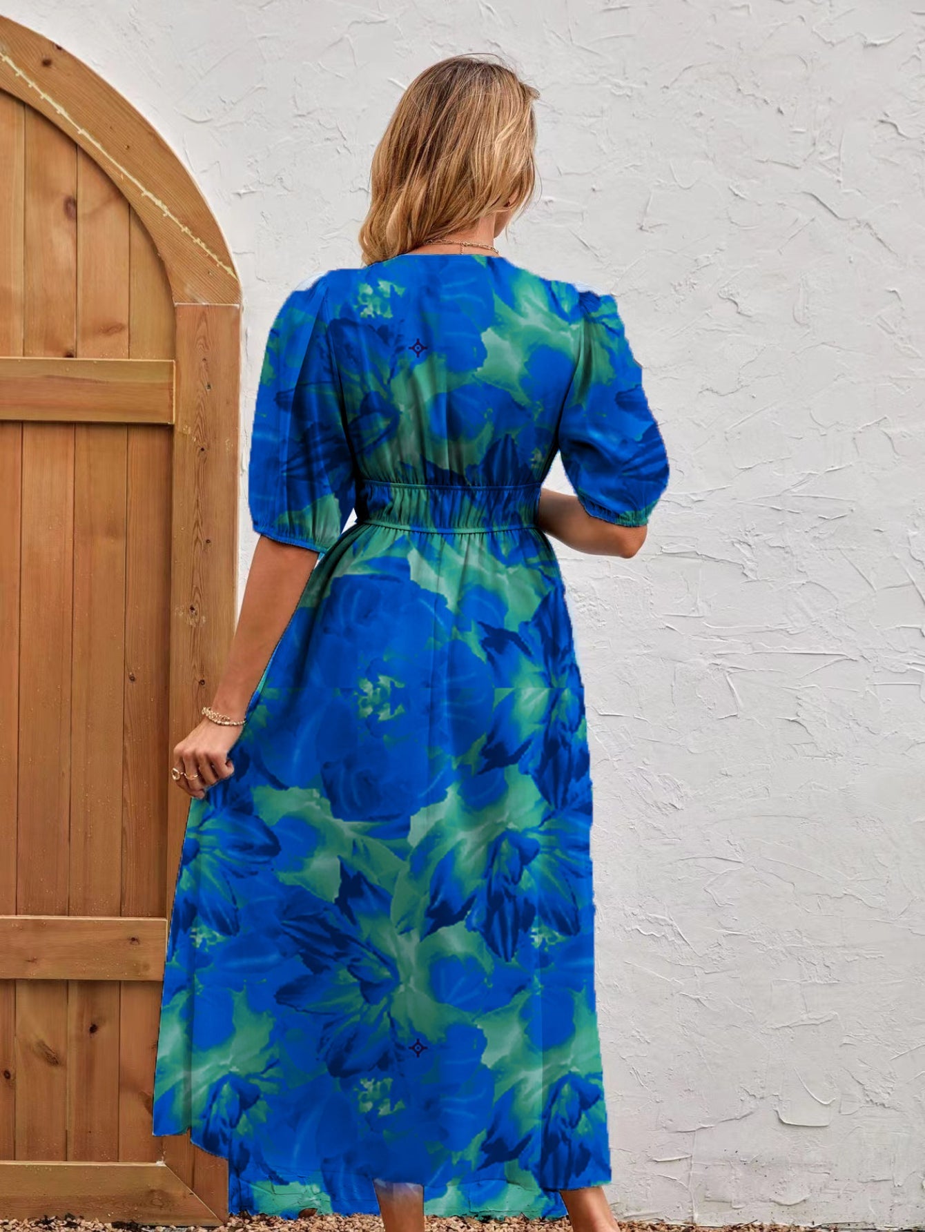 V Neck Short Sleeve Cinched Waist Floral Midi Dress