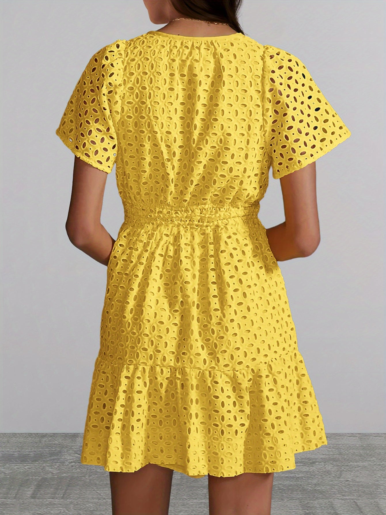 V-Neck Short Sleeve with Ruffle Hem & Smocked Waist Chic Cotton Mini Dress