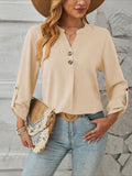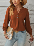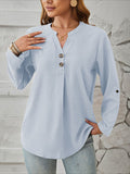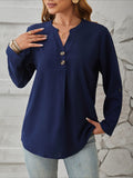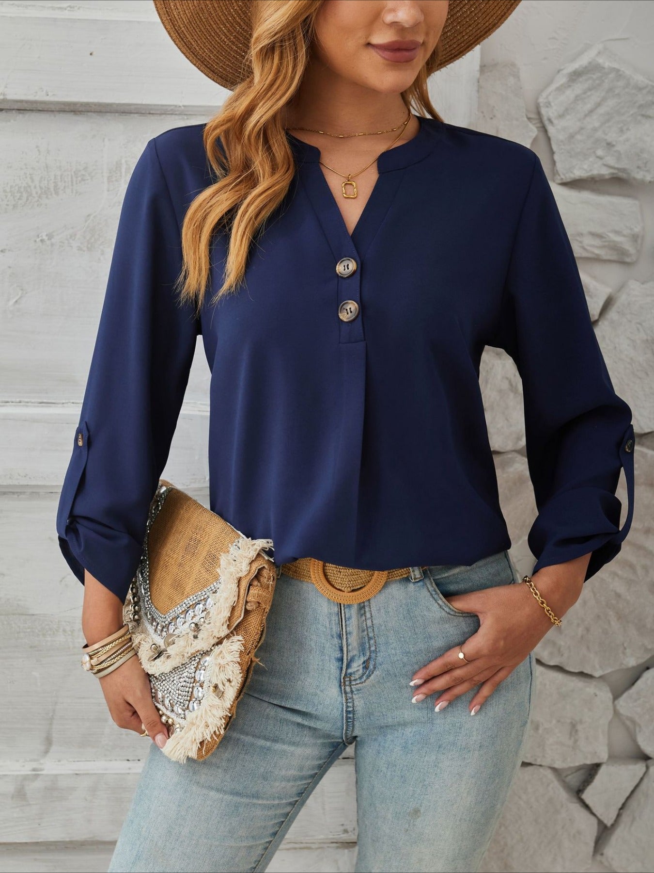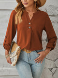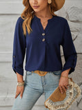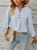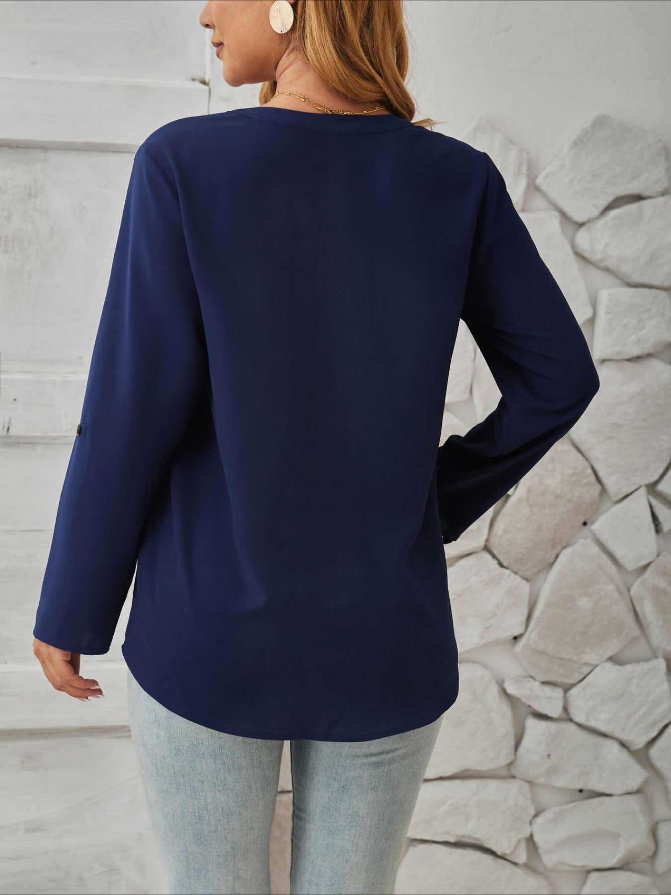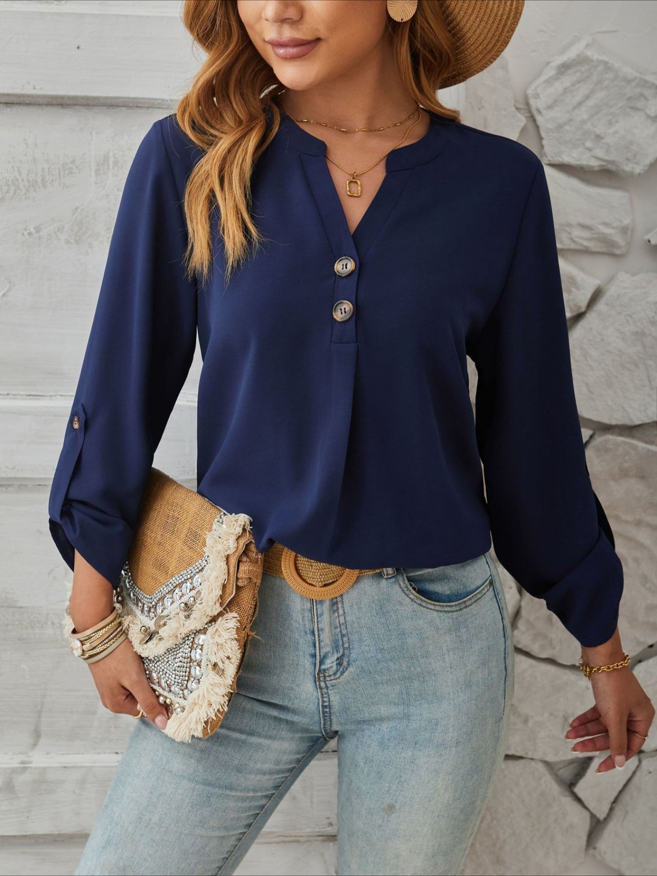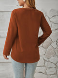 V-Neck Solid Color Comfortable Breathable Casual Long Sleeve Top